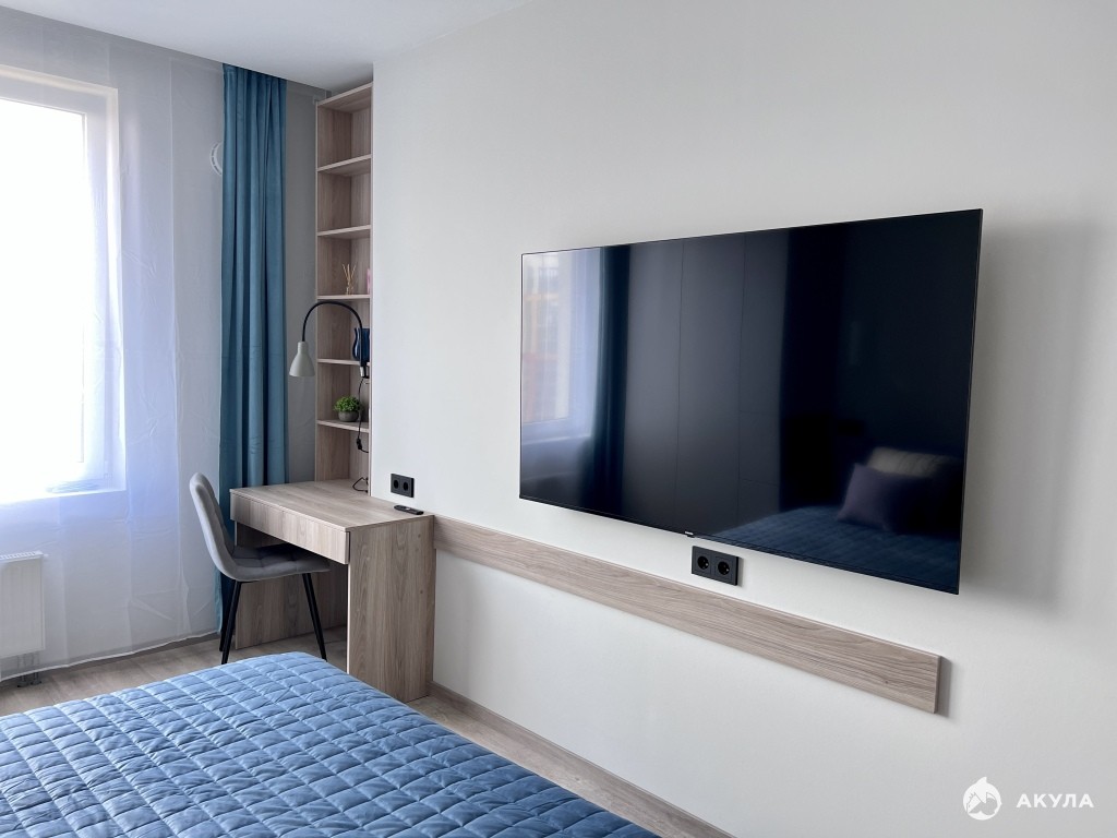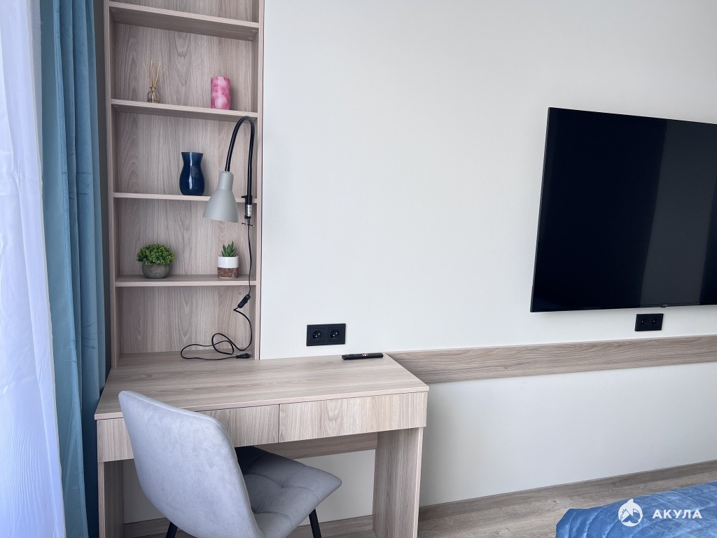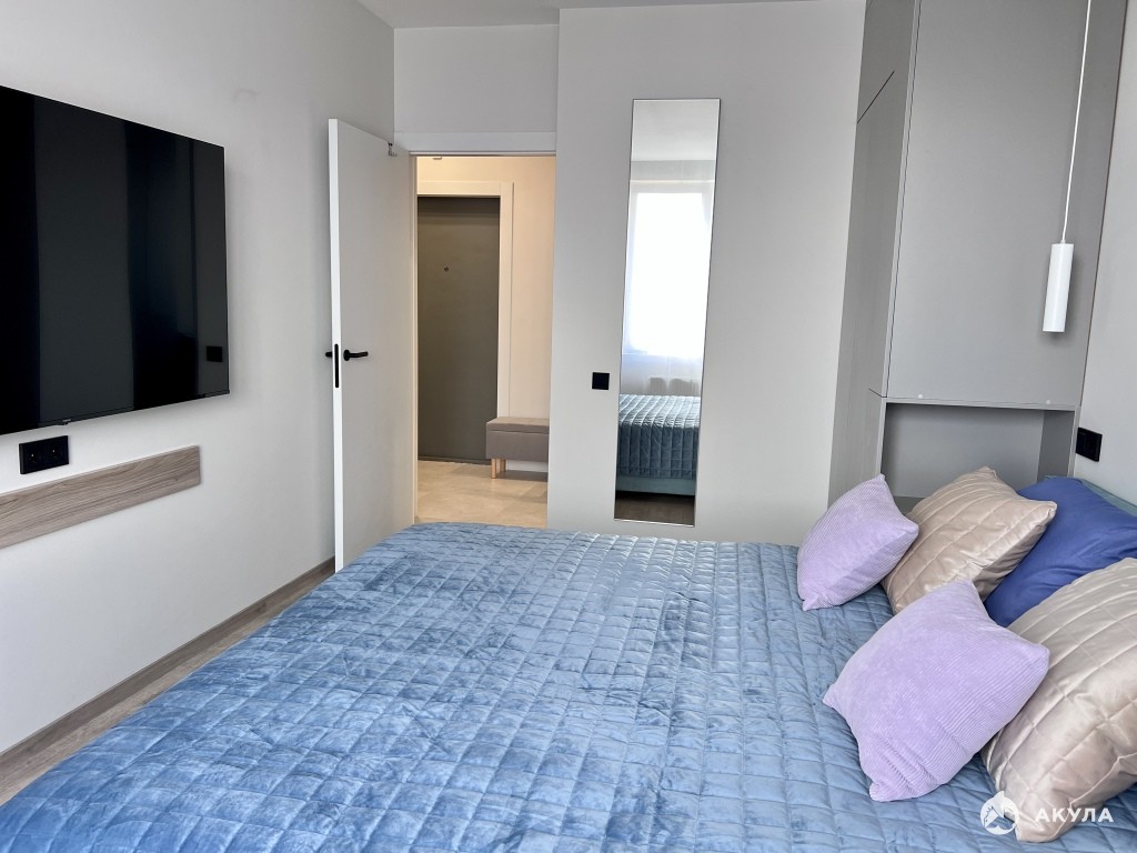 Подойдет для одного или двух жильцов, в спальне расположена большая удобная кровать, огромный телевизор, рабочий стол, вместительные шкафы, огромное зеркало.. Есть подушки, одеяло, постельное белье.