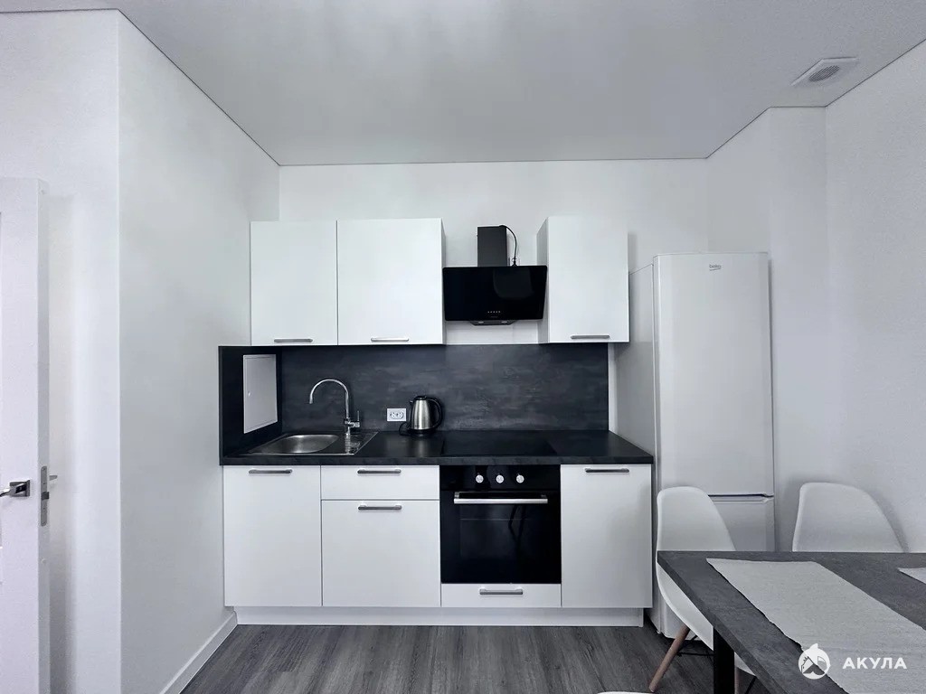 • Полный комплект бытовой техники: холодильник, духовой шкаф, плита, вытяжка, эл. чайник. Телевизор (диагональ 55) со смарт-ТВ Видеодомофон.