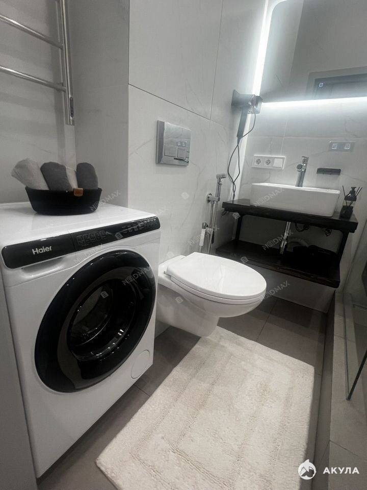 В квартире есть всё необходимое для комфортного проживания и приятного отдыха: просторная двуспальная кровать (180x200), телевизор с диагональю 55 дюймов и смарт-ТВ, полностью оборудованная кухня с индукционной плитой, вытяжкой, холодильником и чайником, набор посуды и приборов, система кондиционирования, ванная комната с душевой кабиной, электрическим полотенцесушителем, феном и стиральной машиной. Постельное белье и банные полотенца предоставлены.