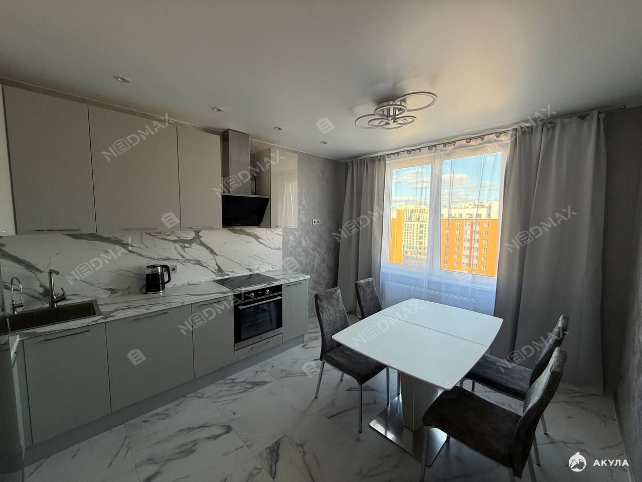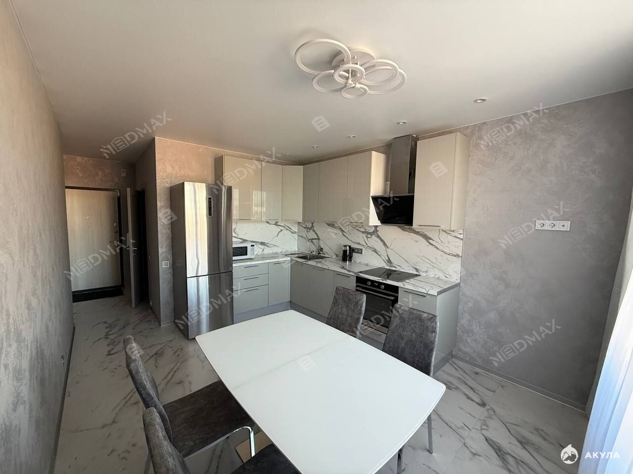 Кухня-гостиная вашей мечты: Пространство для кулинарных экспериментов и приёмов гостей оснащено всей новой техникой, включая посудомоечную машину и фильтр для воды.