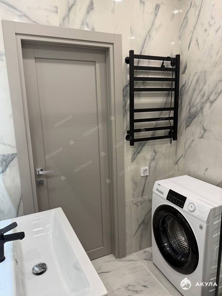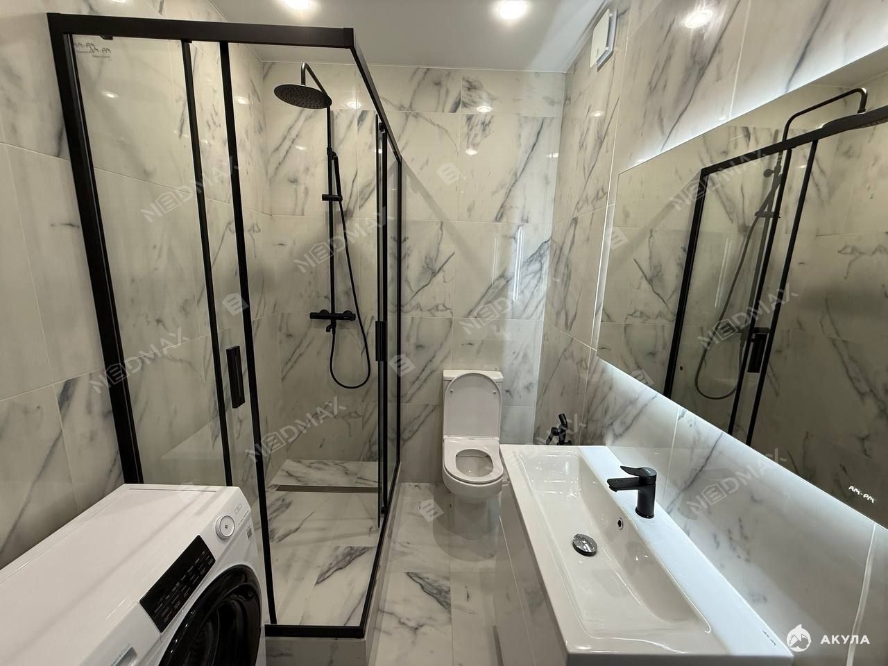 Ванная комната как в спа-отеле: Наслаждайтесь тропическим душем. Пол с подогревом и стиральная машина подчеркивают заботу о вашем быте. Вся сантехника — от брендов Damixa и AM PM.