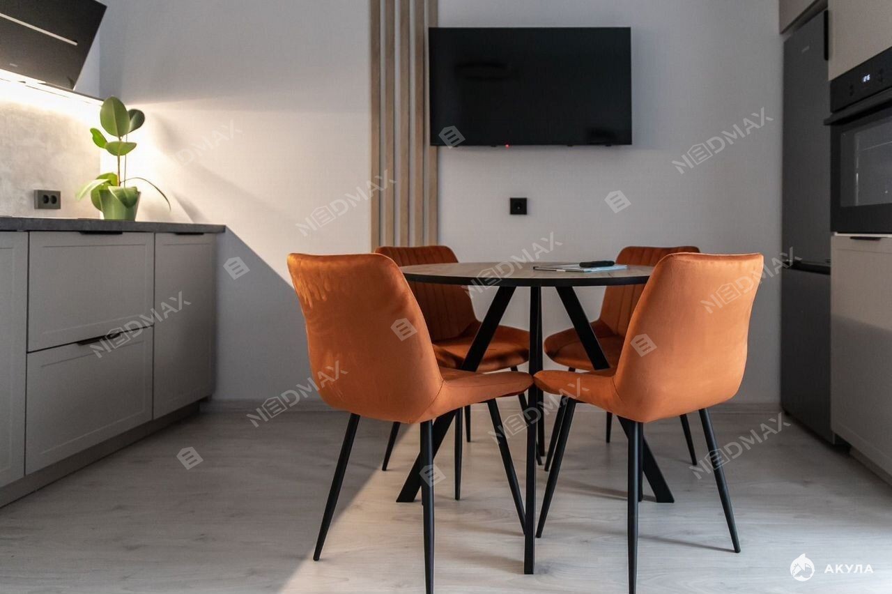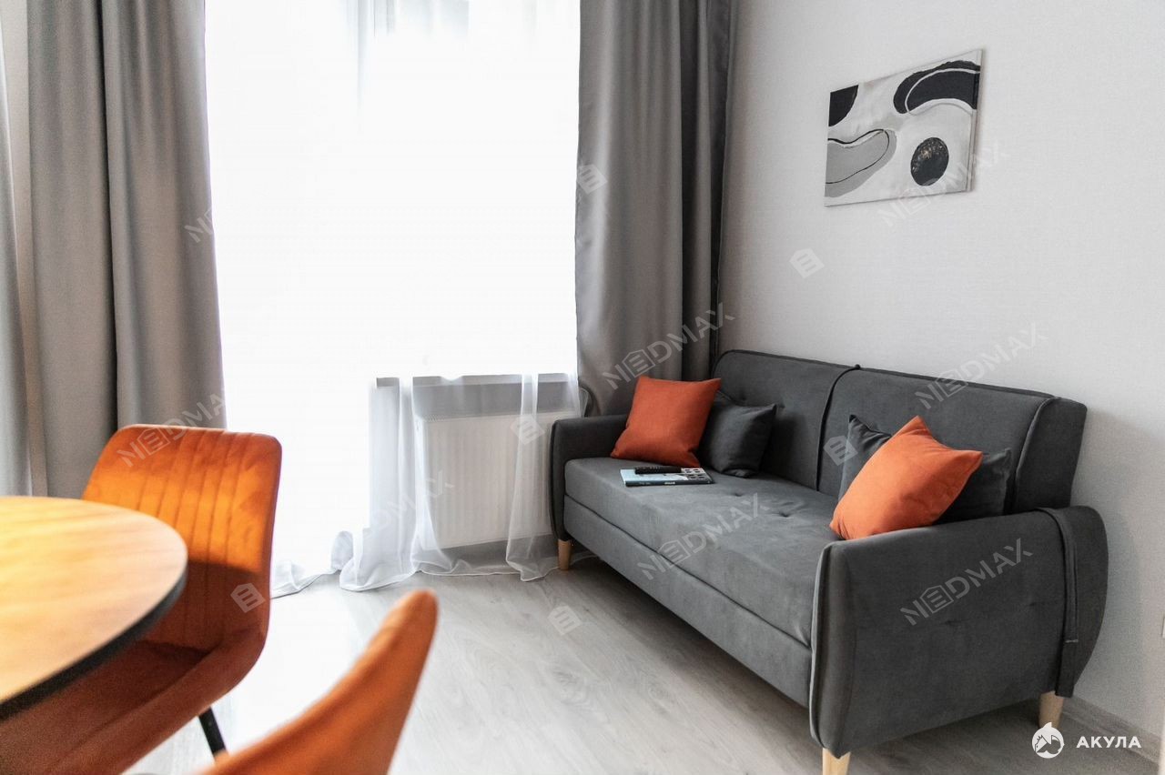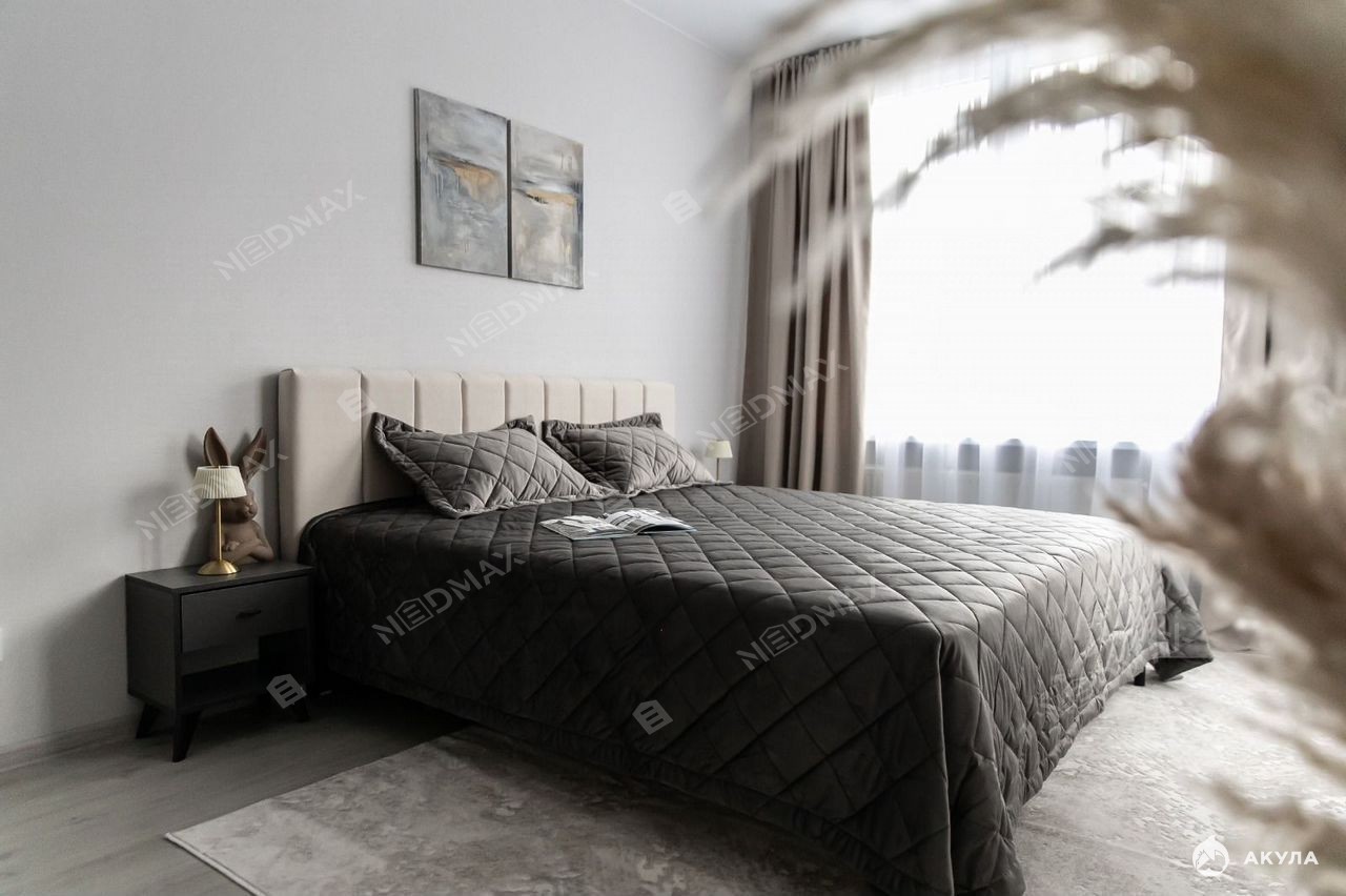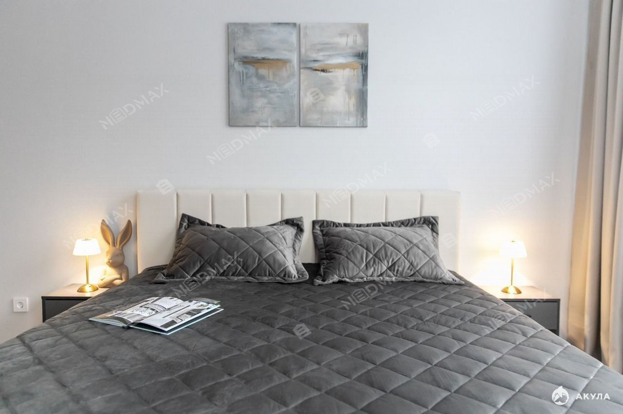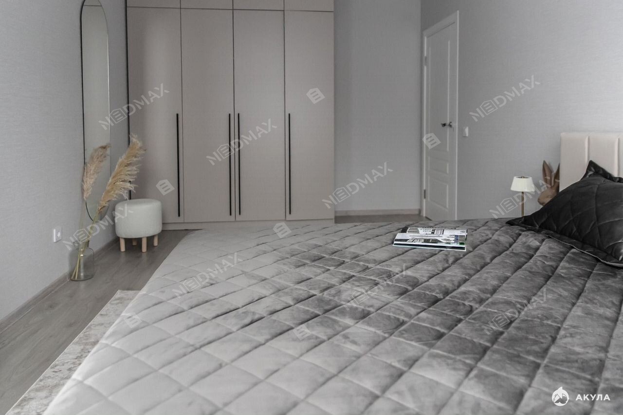 В квартире выполнен качественный дизайнерский ремонт, есть вся необходимая для комфортной жизни мебель, оборудованная кухня с бытовой техникой: посудомоечная и стиральная машины, духовой шкаф, холодильник, микроволновка, телевизор.