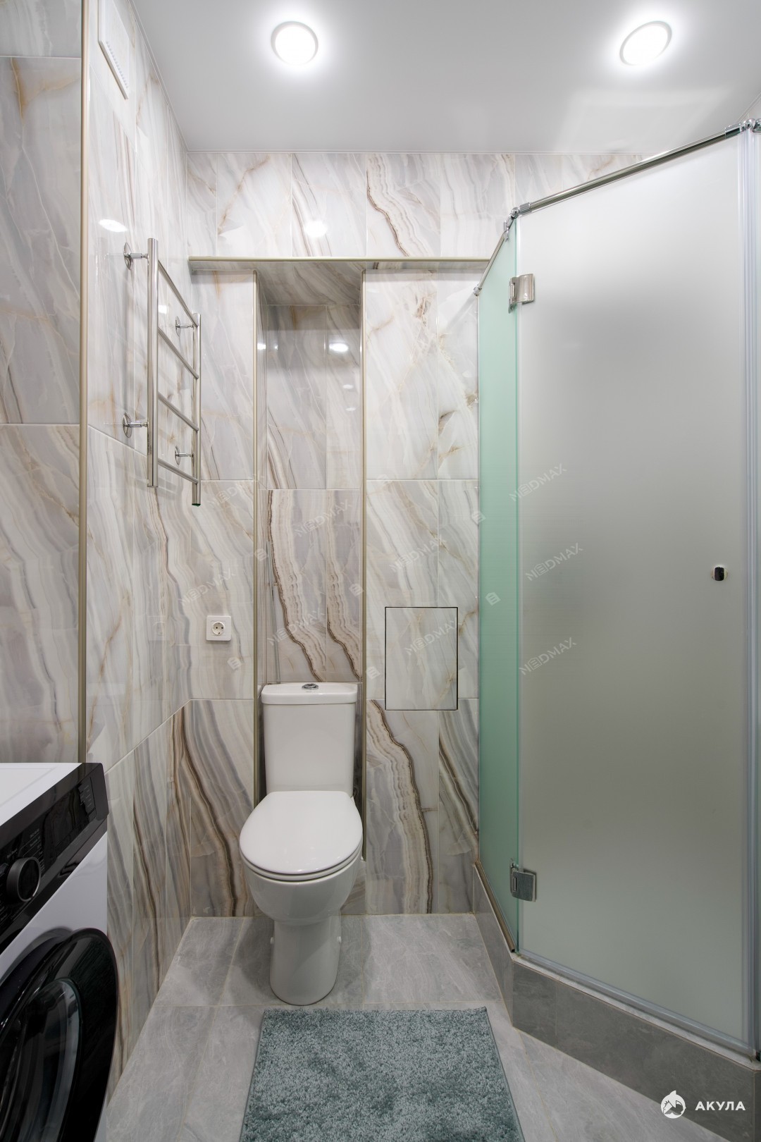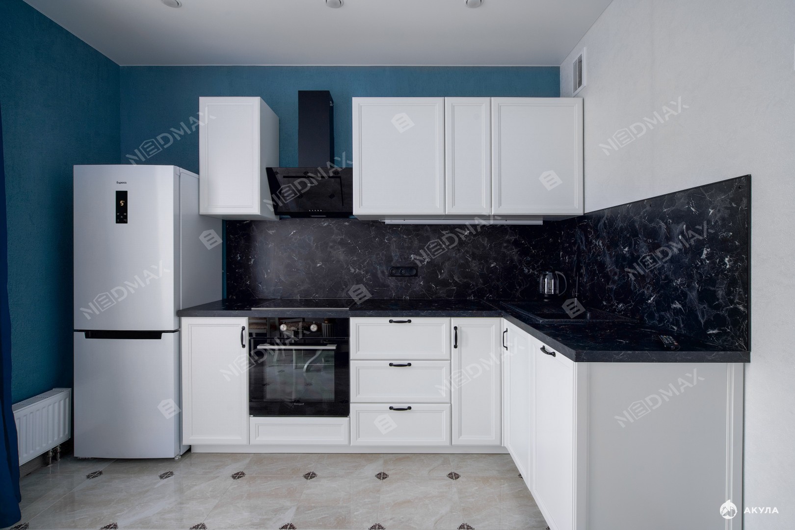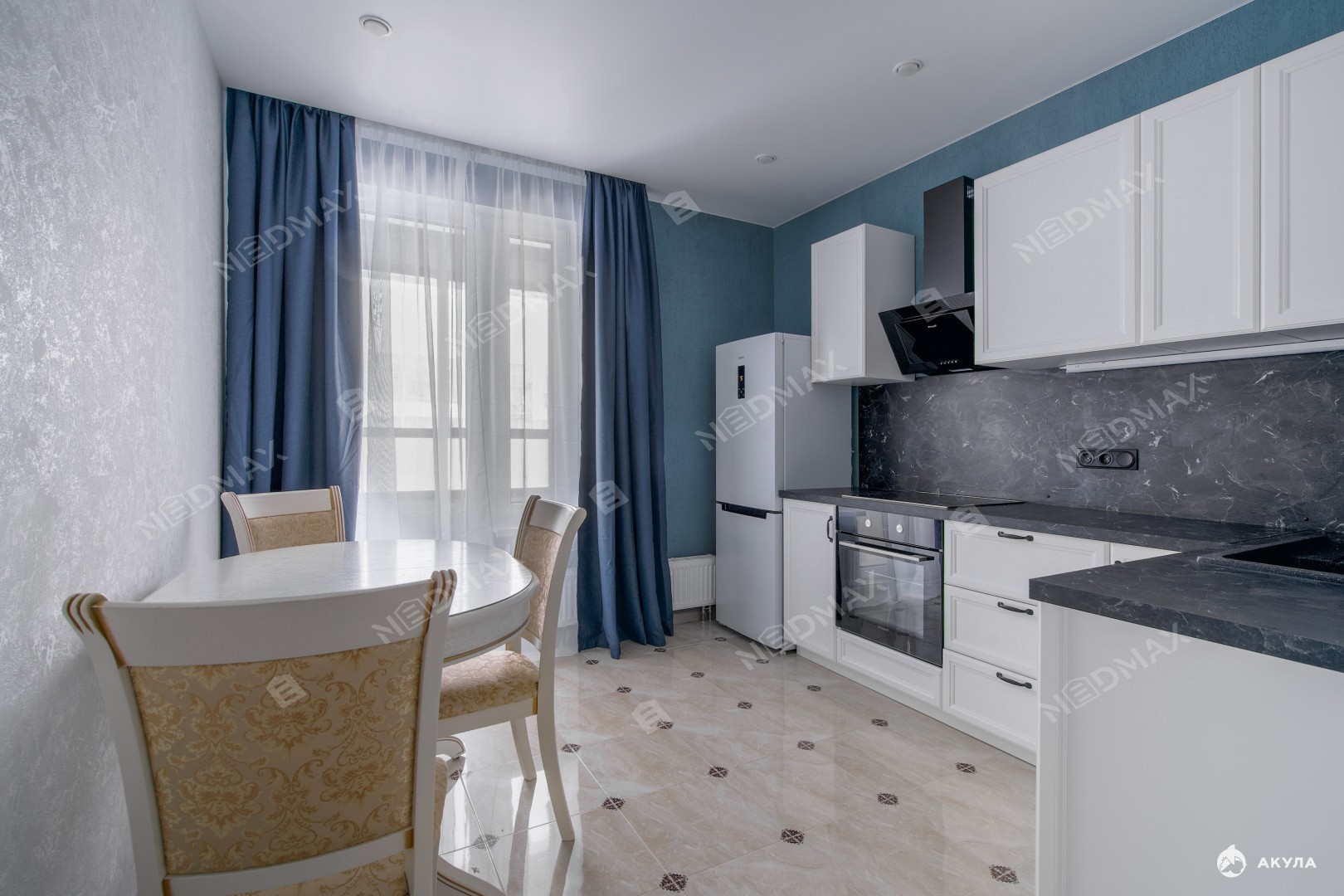 Квартира оснащена всей необходимой мебелью и техникой (холодильник, духовой шкаф, посудомоечная машина, варочная панель, электрический чайник). В зоне кафеля предусмотрена система теплого пола.