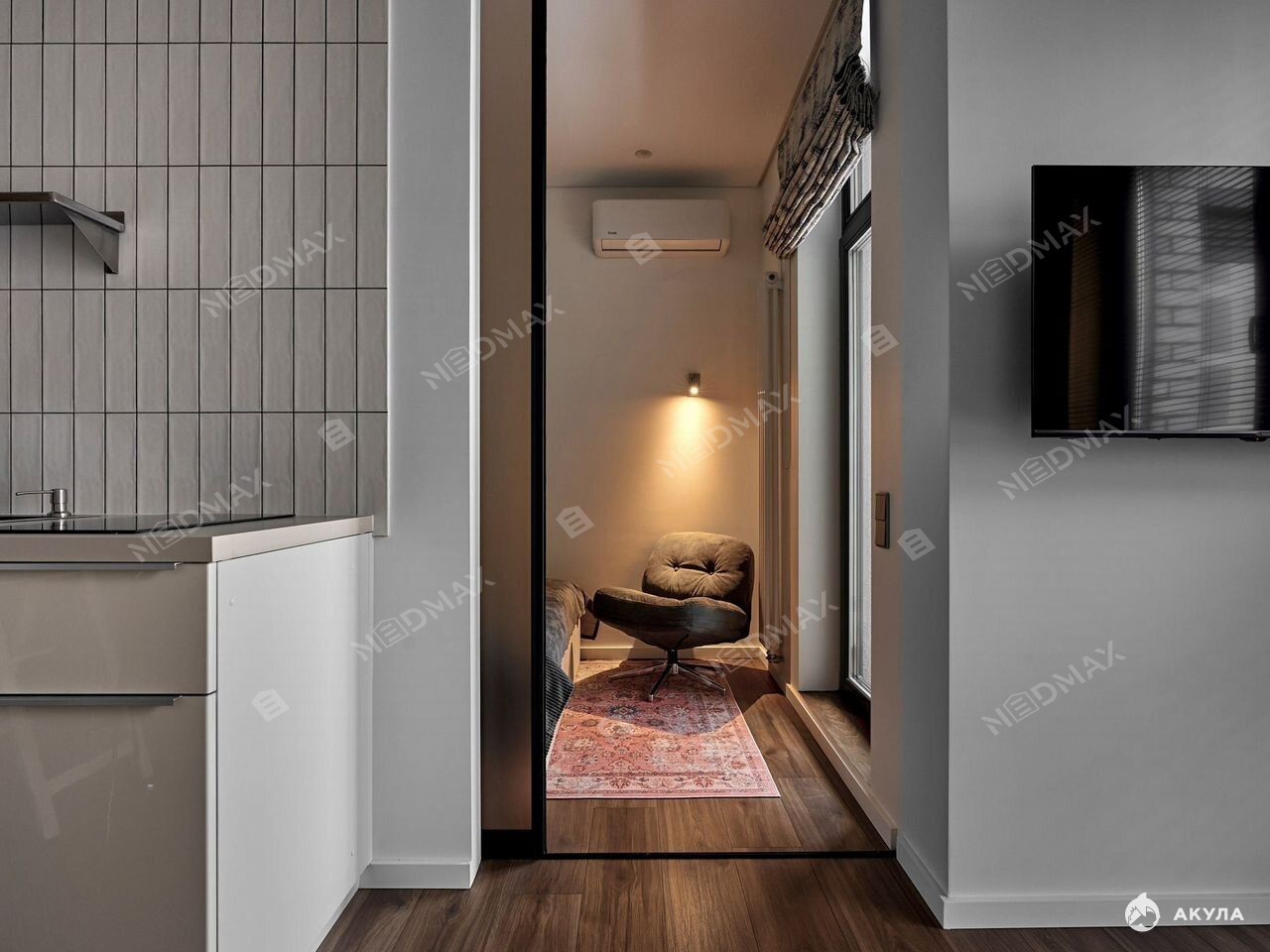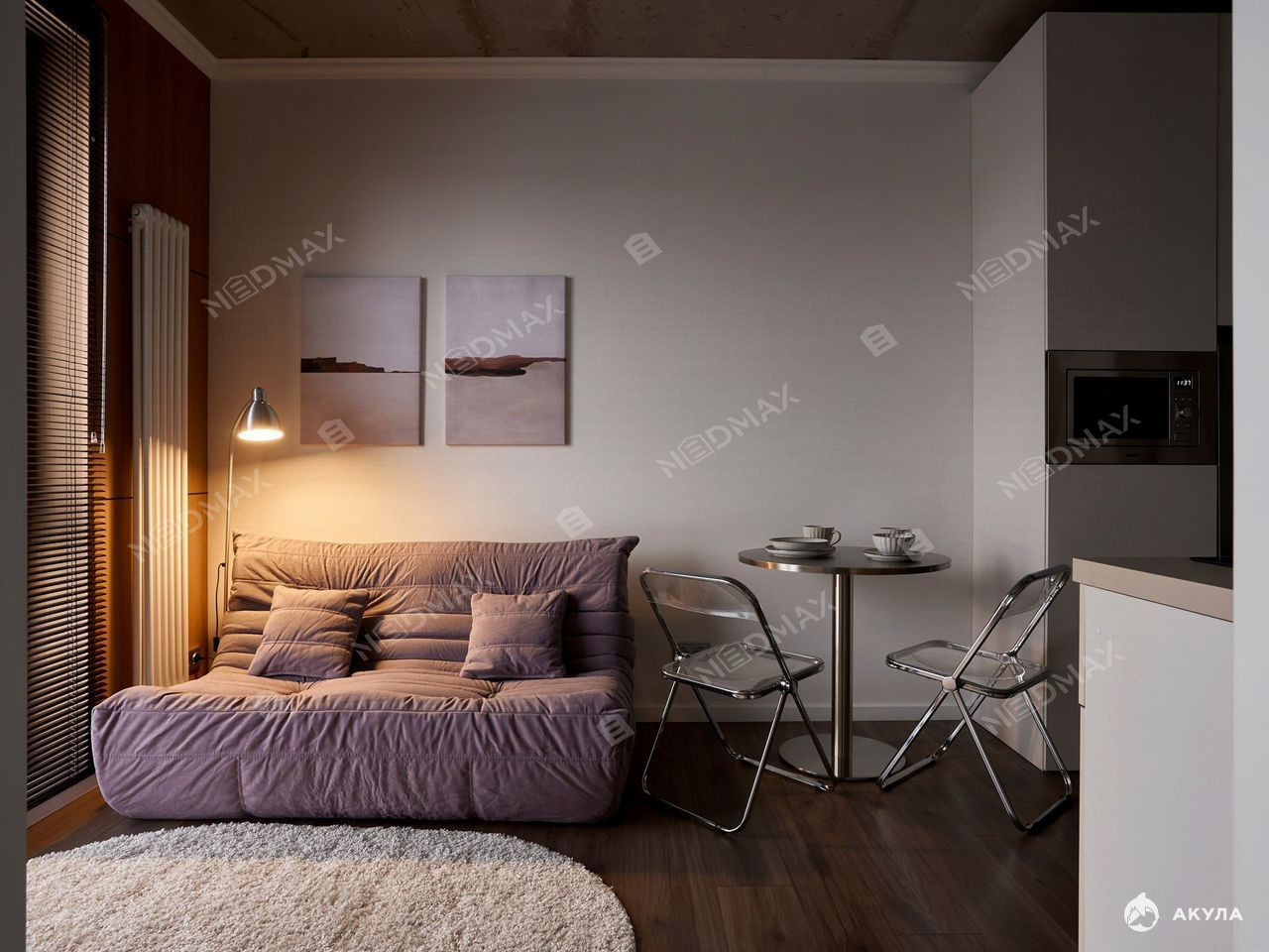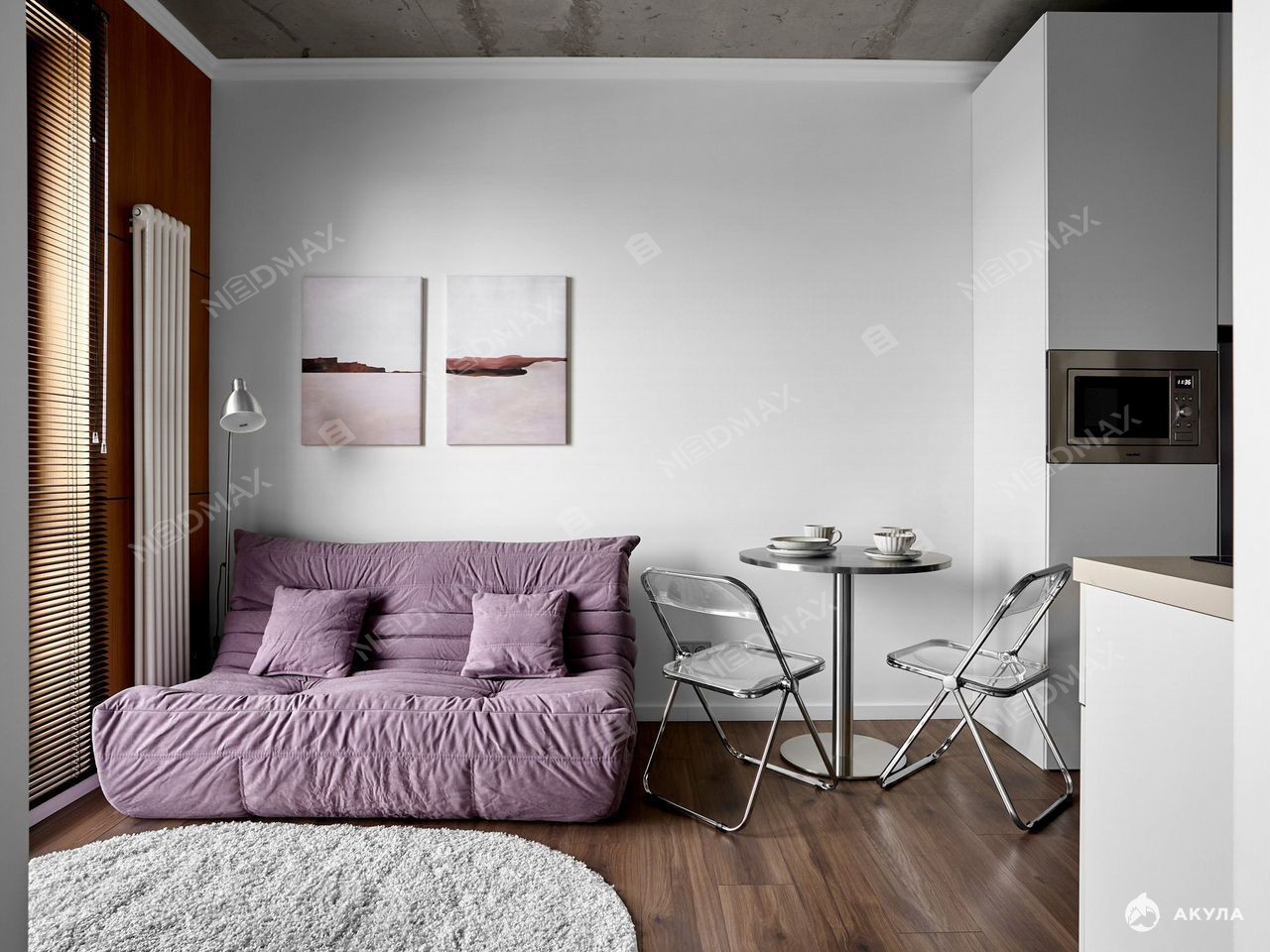 Несмотря на компактные размеры, квартира имеет просторную кухню-гостиную и отдельную спальню с лоджией.