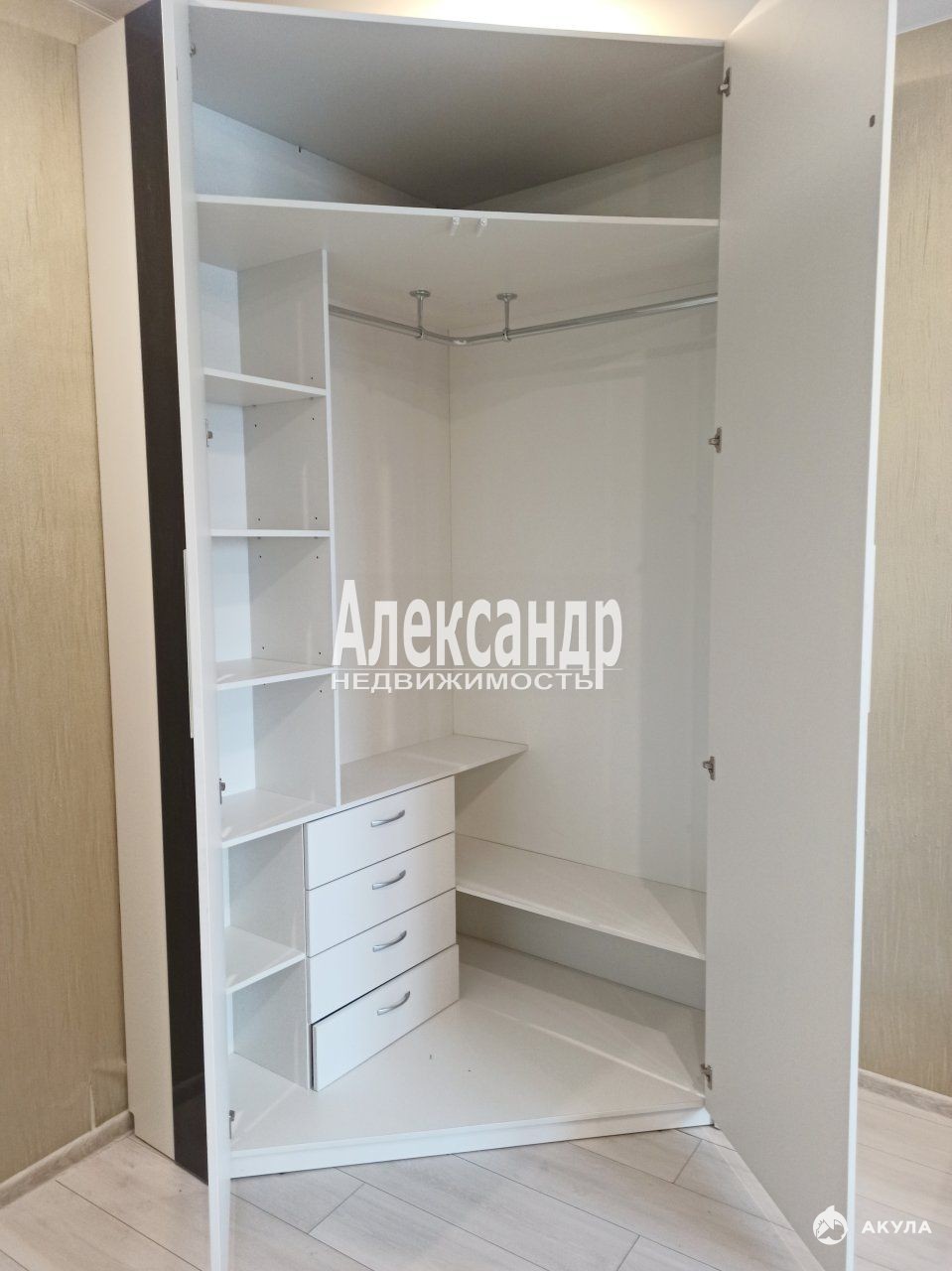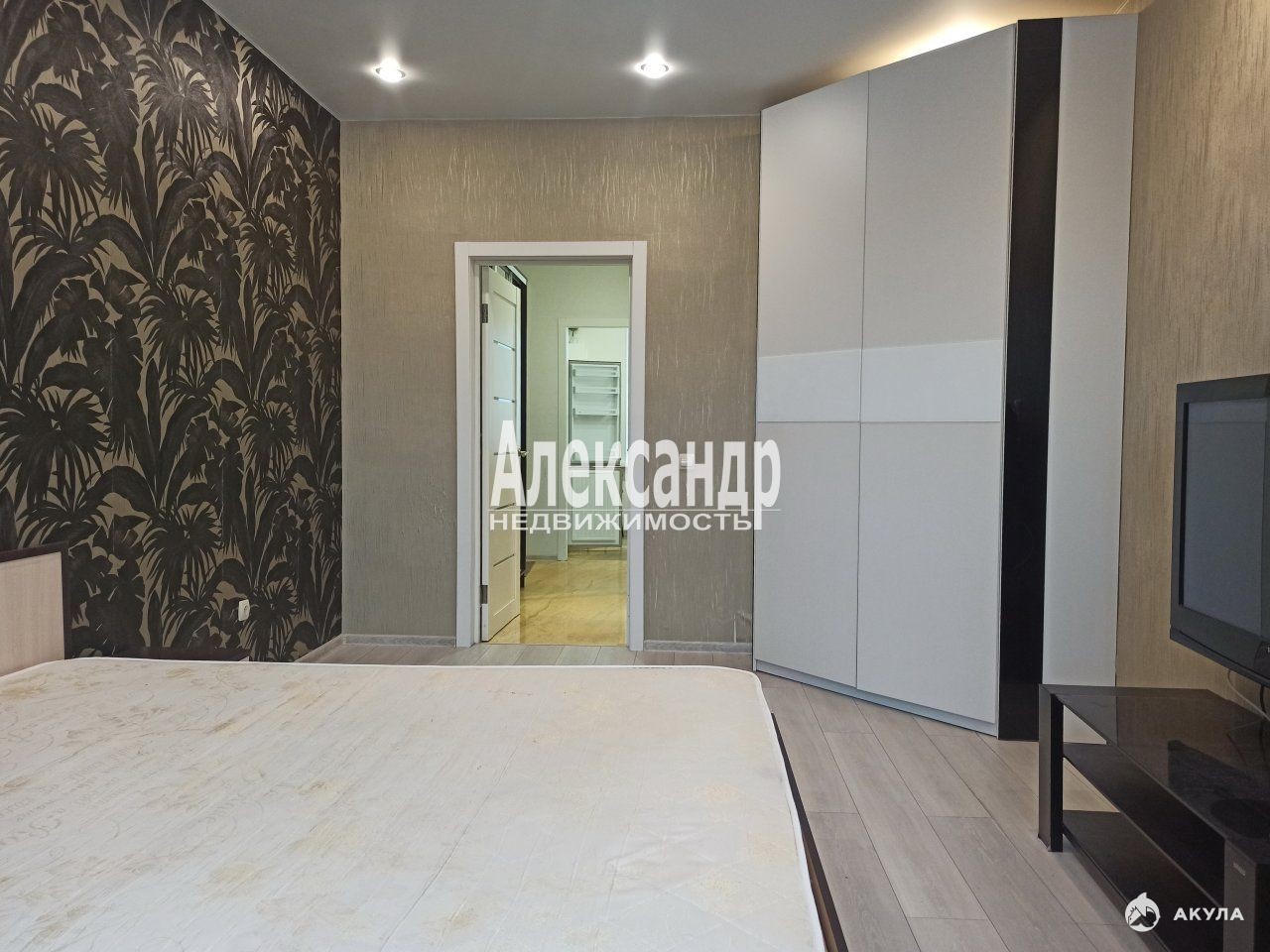 Встроенная кухня с барной стойкой, есть посудомоечная машина. В прихожей и спальной комнате установлены вместительные шкафы-купе.