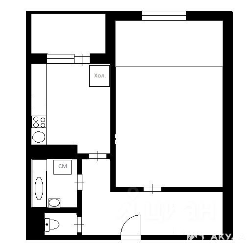 Электрическая плита, холодильник, стиральная машина, телевизор, диван, несколько вместительных шкафов. Есть место для детской кроватки