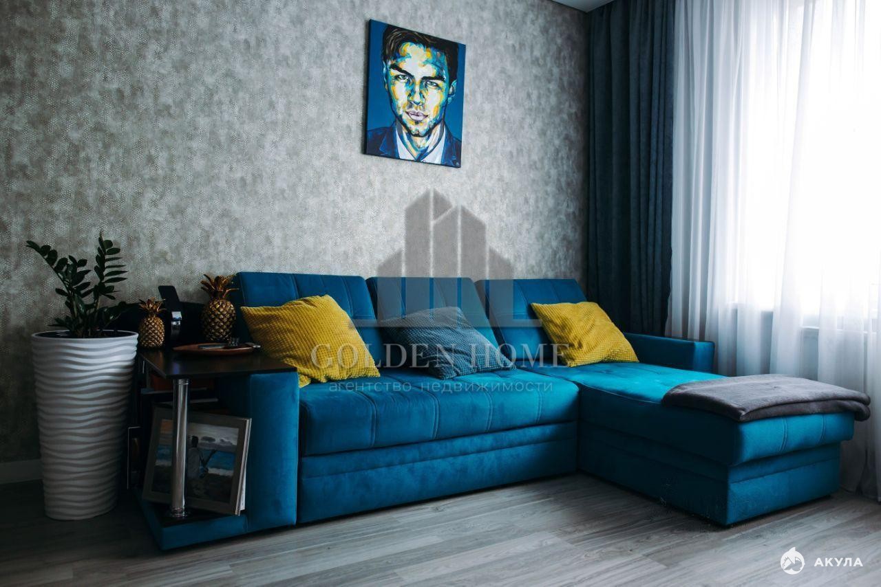 Функциональная планировка - спальная комната, просторная гостиная с оборудованной кухней (посуд.машина) с выходом на лоджию, совмещенный санузел (душевая).