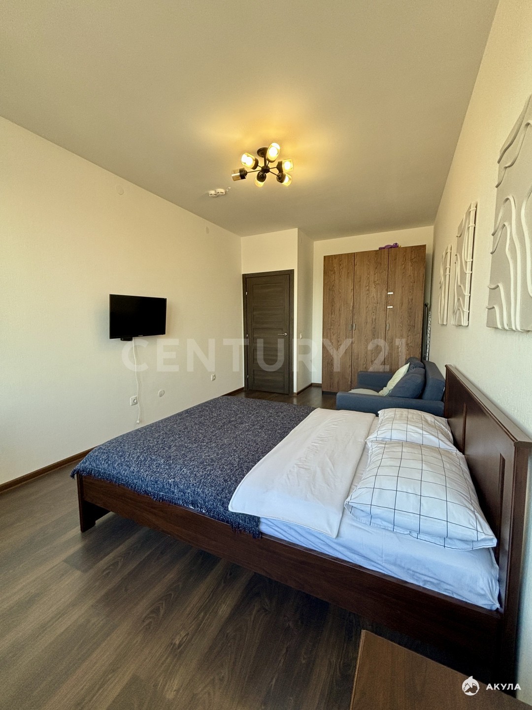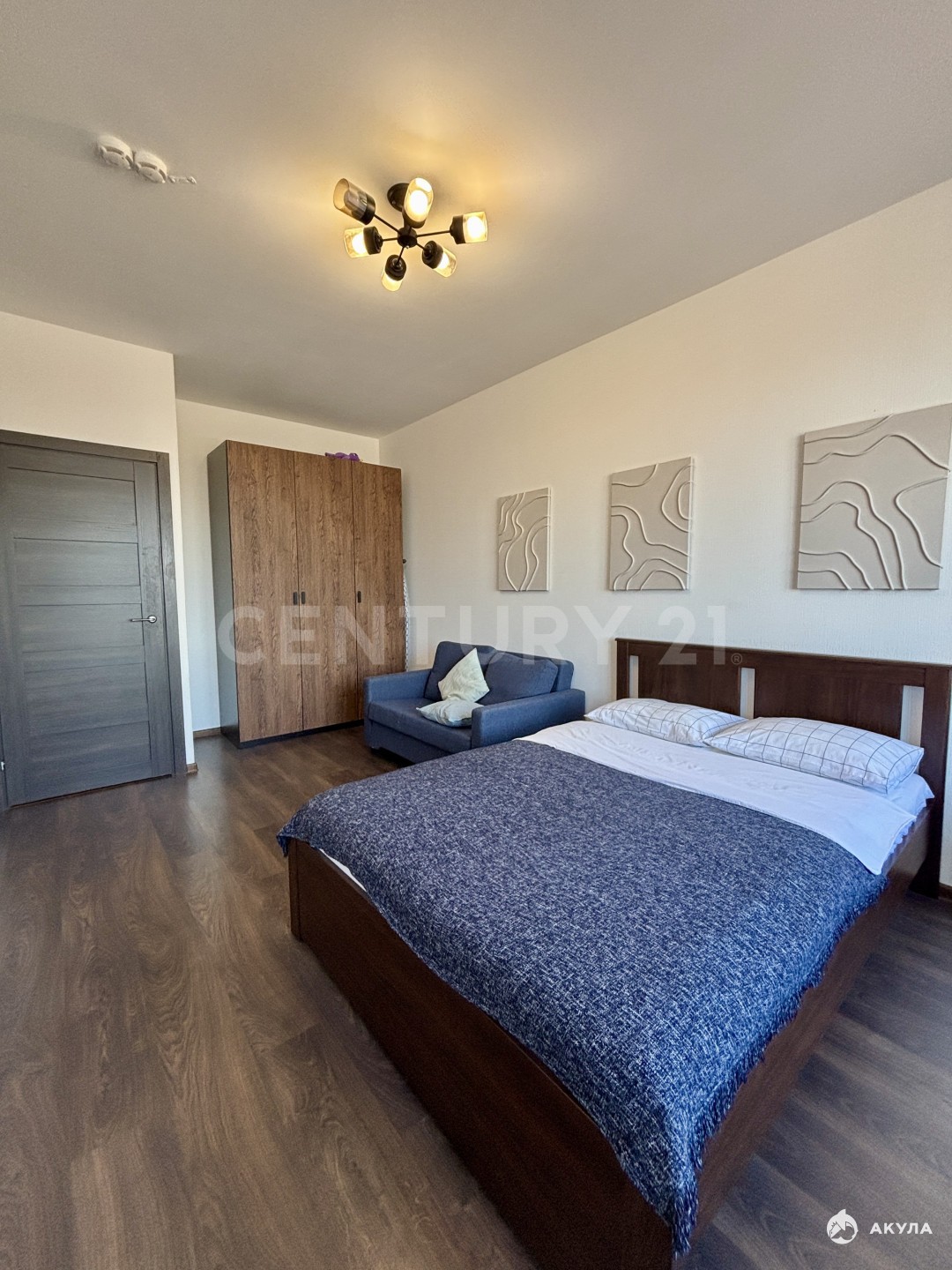 Функциональная и уютная мебель: Продуманная меблировка включает удобную кровать, просторный шкаф для одежды.