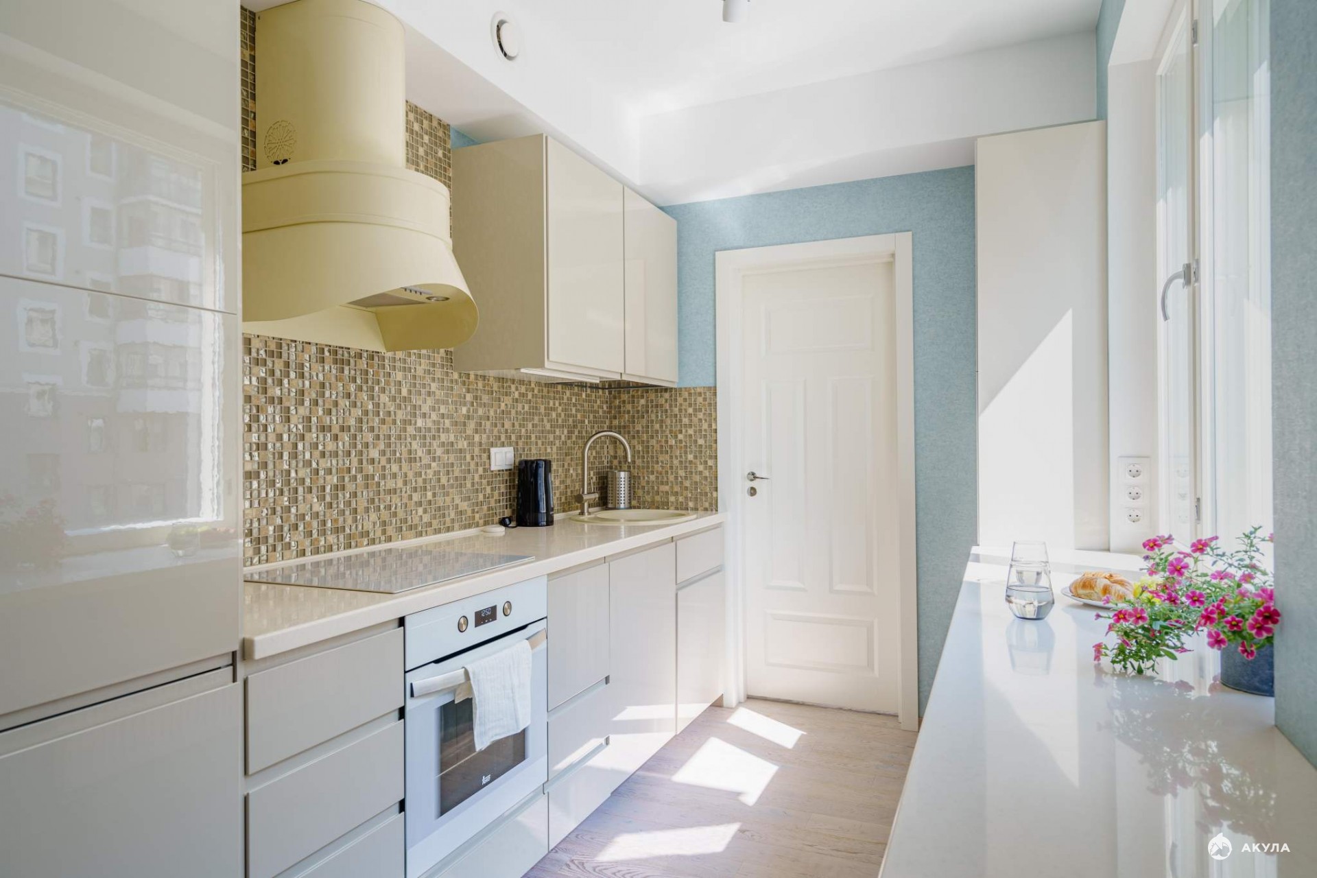 Кухня оборудована техникой: холодильник, посудомоечная машина. В ванной установлена стиральная машина и предусмотрен теплый пол.