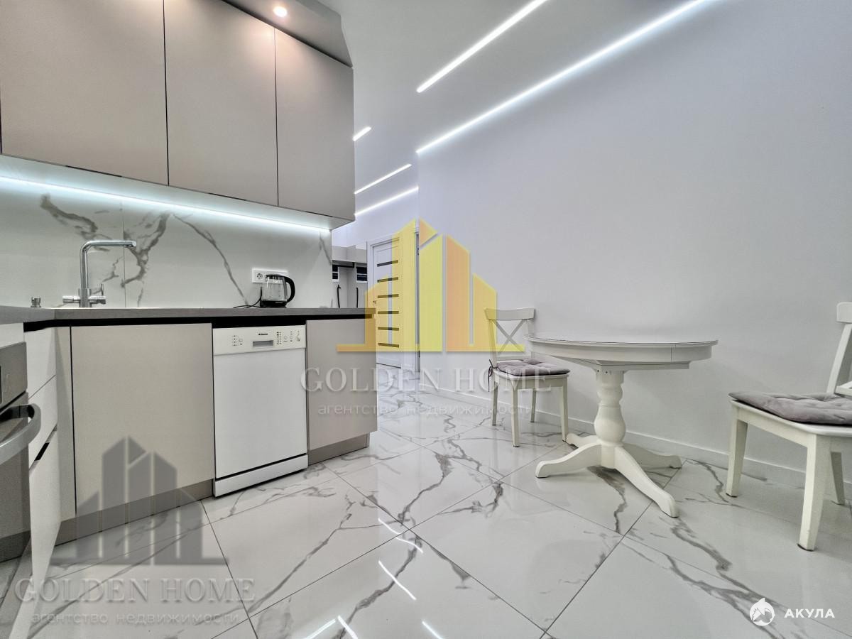 Полностью меблирована и технически оснащена. В квартире кровать 160 фирмы Мун, диван 140 , шкаф купе , 2 телевизора, душевая кабина, стиральная машина, посудомоечная, холодильник, варочная панель, духовой шкаф, водяной фильтр. Установлены кондиционеры. Планируется установка сушильной машины.