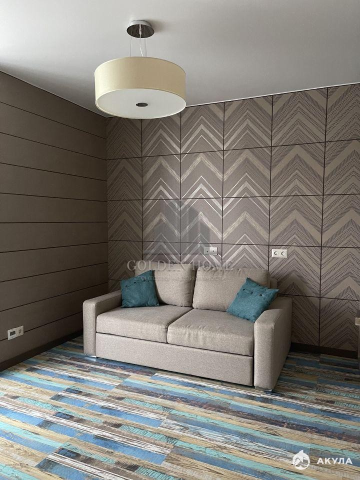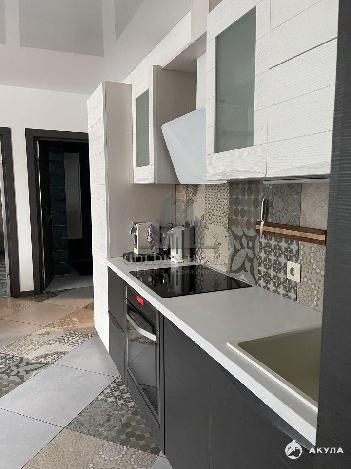 Полностью меблирована и технически оснащена. Холодильник, стиральная машина, посудомоечная машина, чайник, фильтр воды, измельчитель, капсульная кофемашина, 2 телевизора, утюг, плита (индукция), пылесос; двухспальная кровать, диван в спальне, диван в гостиной, 4 шкафа, гардеробная; письменный стол, кухонный стол, стулья, теплые полы в зоне керамогранита.