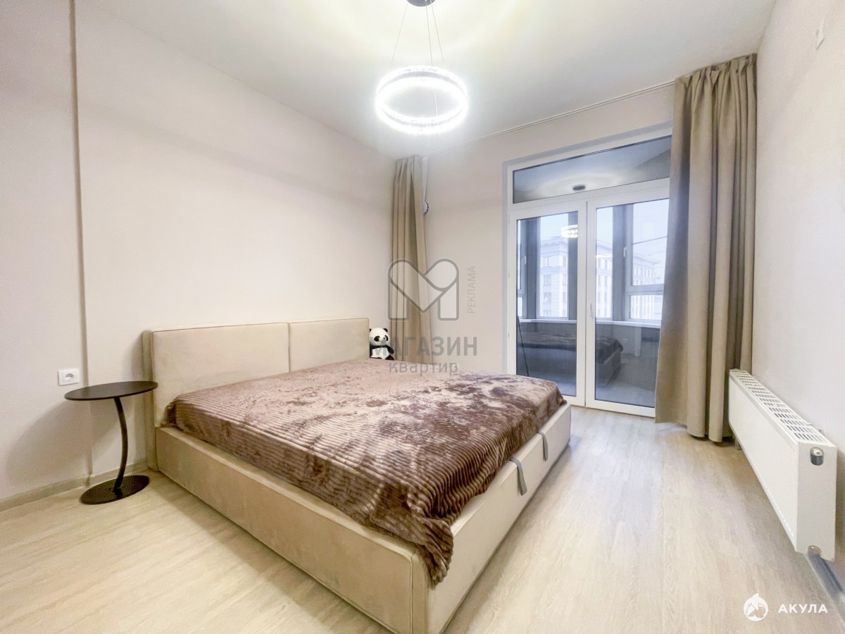 Спальня с большой кроватью и матрасом «Аскона», гардин с полной blackout-подкладкой для комфортного сна.