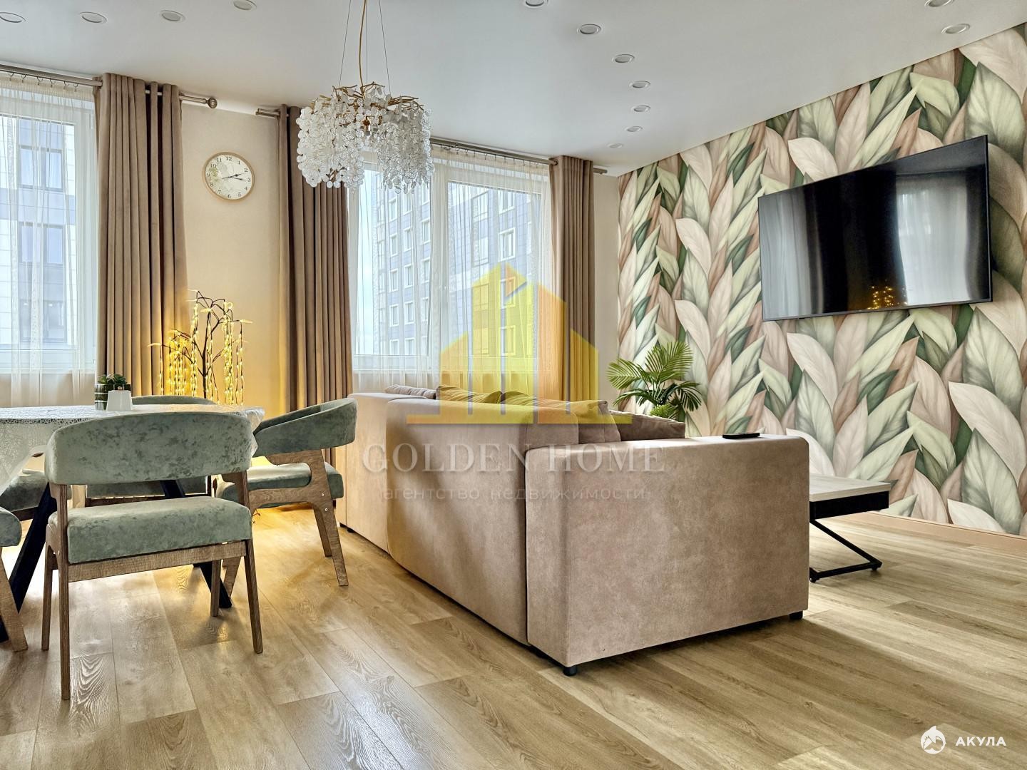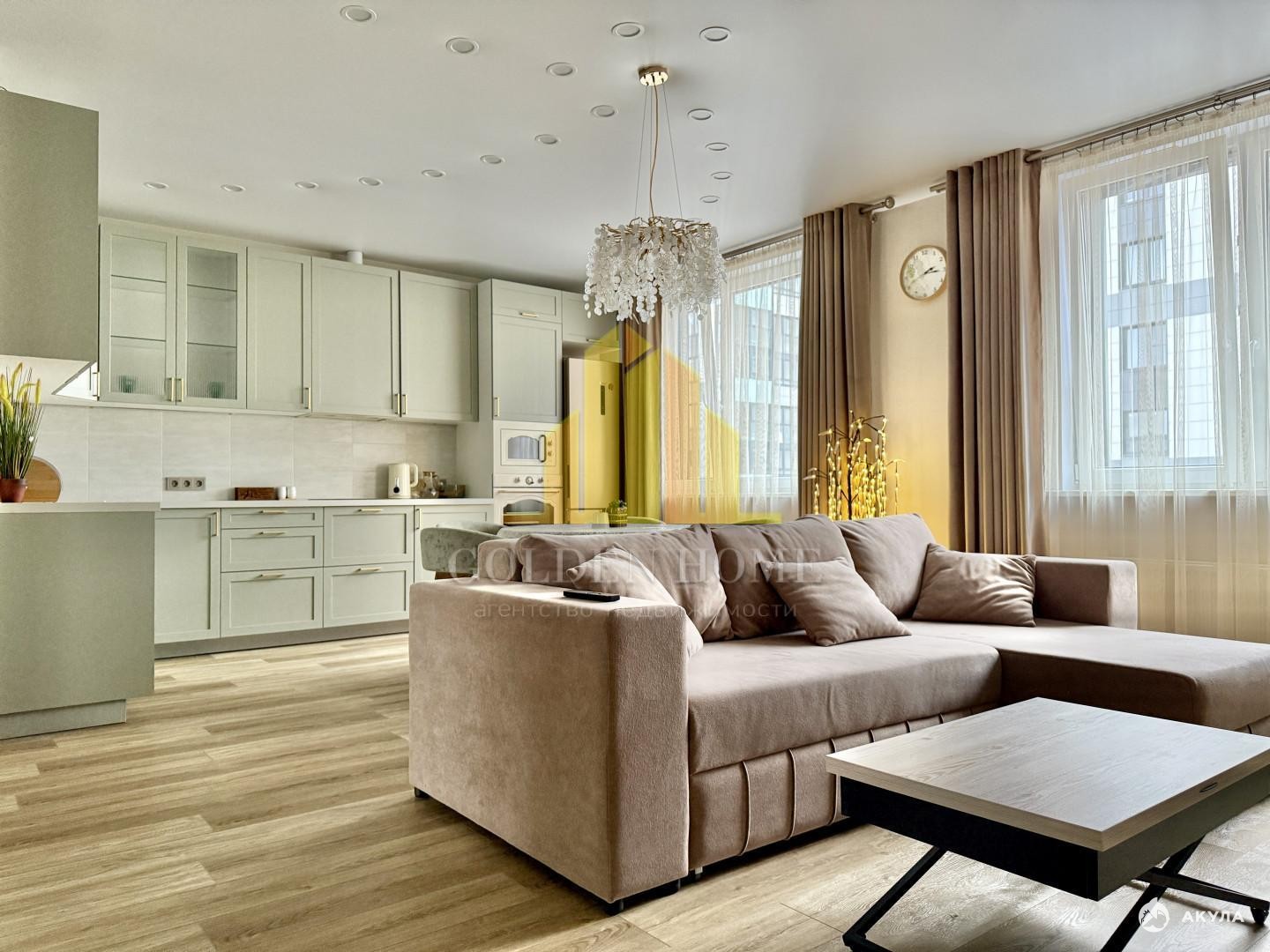 Квартира с двумя изолированными спальнями и большой кухней-гостиной 28 кв.м. В квартире никто не проживал, выполнен качественный дизайнерский ремонт.