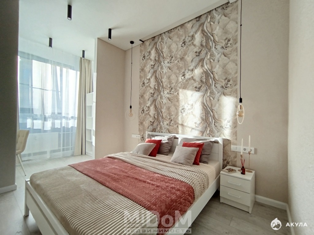 Комфортная двусторонняя планировка: просторная зона прихожей, центральная гостиная зона, кухня и гостевая спальня – с одной стороны, вторая спальня с кабинетом и гардеробной – с другой стороны. Раздельный санузел, что так важно для большой семьи.