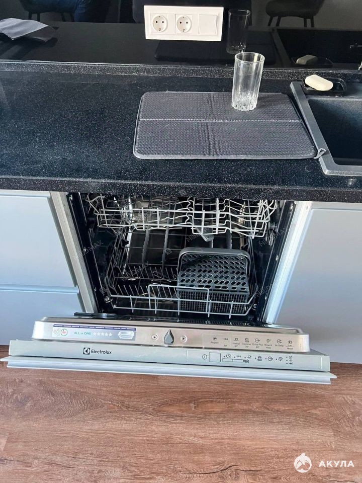 Техника: индукционная плита, посудомоечная машина (60 см), холодильник, стиральная машина, телевизор, чайник, утюг, отпариватель