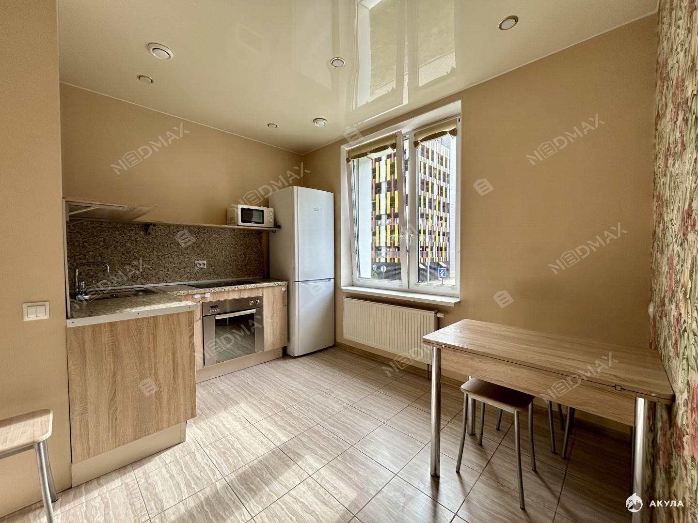 Квартира с современным ремонтом, имеется необходимая мебель и бытовая техника для комфортного проживания. В кухне установлен духовой шкаф (на фото нет). В спальне двуспальная кровать. Есть просторный шкаф-купе, а также застекленная лоджия. С/у с душевой кабиной.