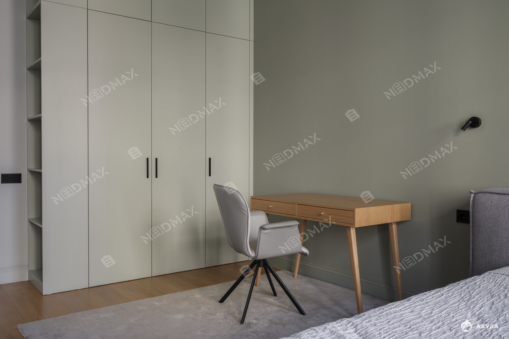 Квартира: стильный интерьер в сочетании с функциональностью. Окна выходят на тихую зеленую улицу. Кухня оборудована встраиваемой техникой (духовой шкаф, варочная панель, посудомоечная машина, холодильник) + капсульная кофеварка и чайник. Выделен отдельный хозблок со стиральной машиной и бойлером. Просторная гардеробная и продуманные зоны хранения в прихожей, спальной и ванной комнатах.