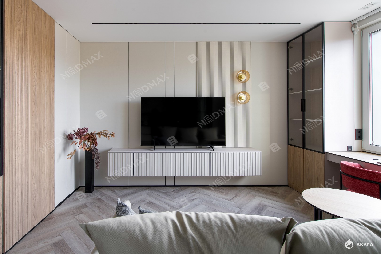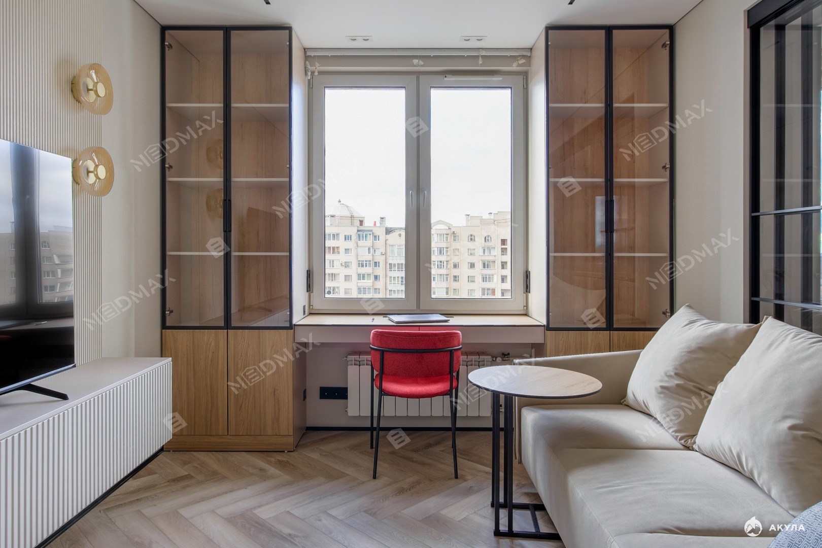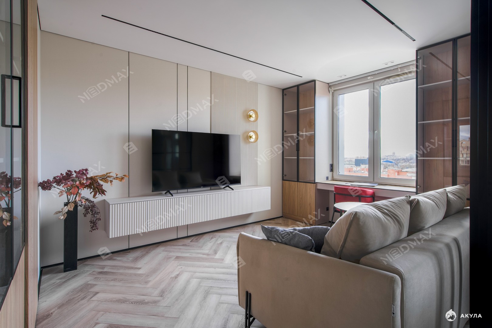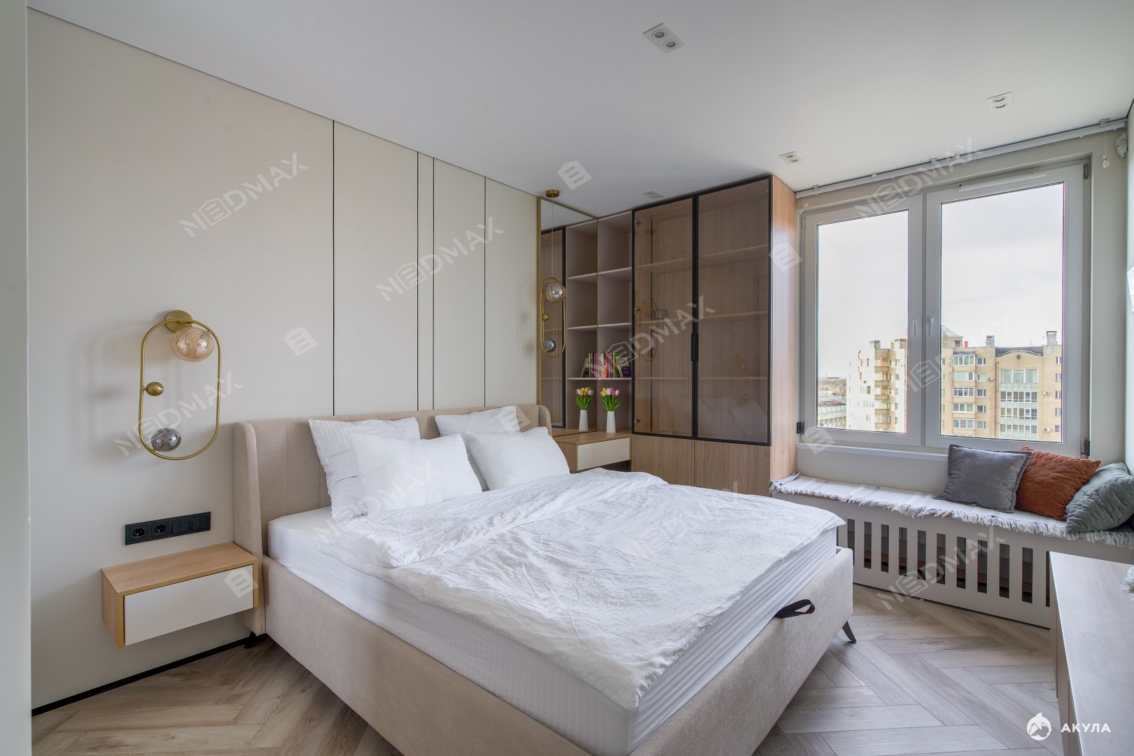 Выполнена шумоизоляция стен, пола и потолка. Имеются подогревы полов в обоих с/у и на балконе.