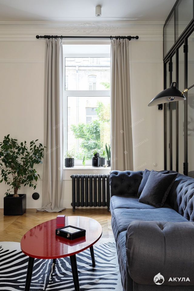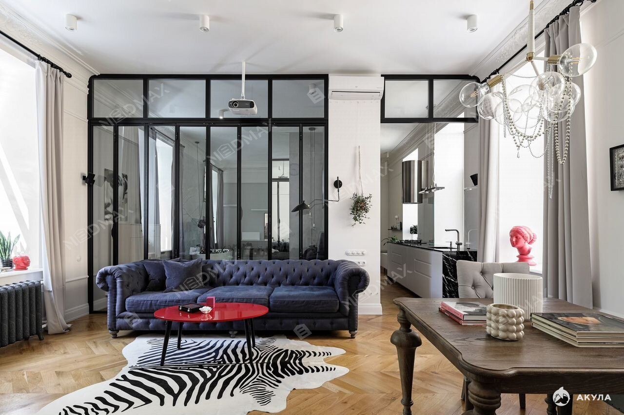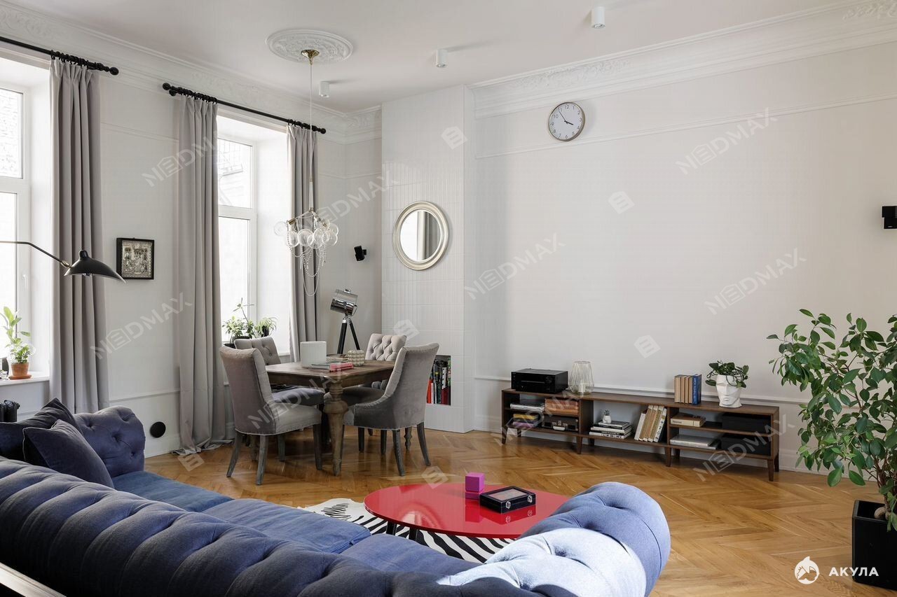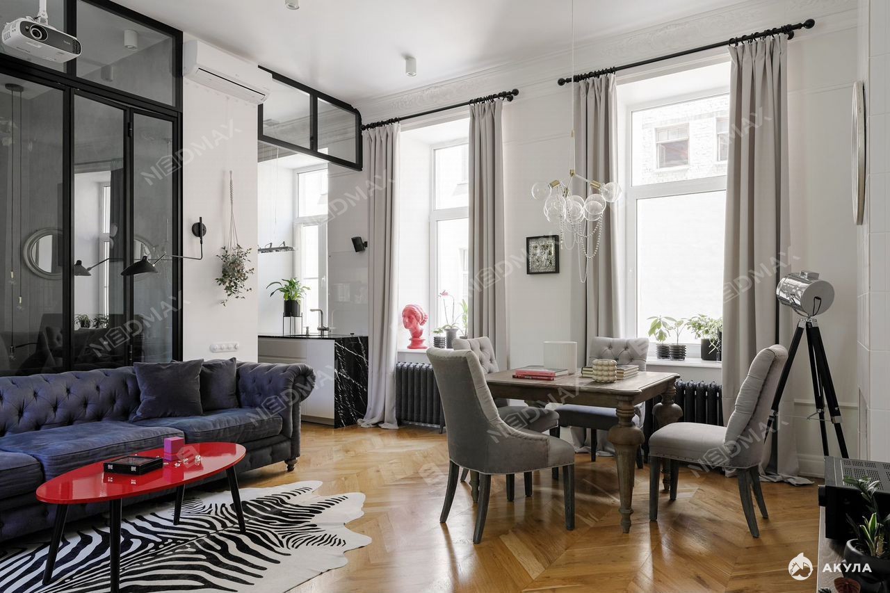 Высокие потолки (3, 60 м) и семь крупных окон наполняют квартиру естественным светом и воздухом, даря ощущение простора и лёгкости.