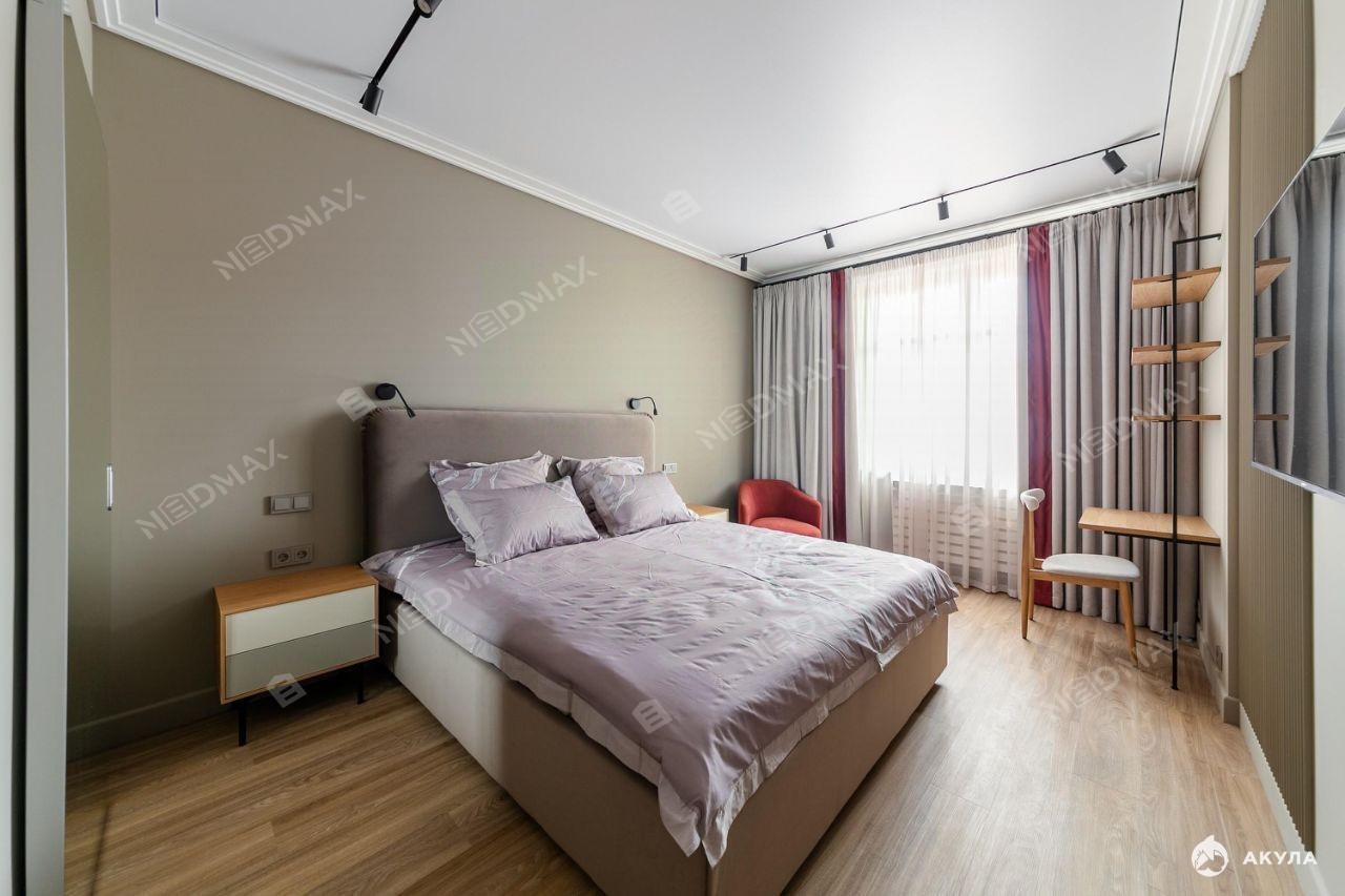 Просторная спальная комната с отдельной гардеробной.