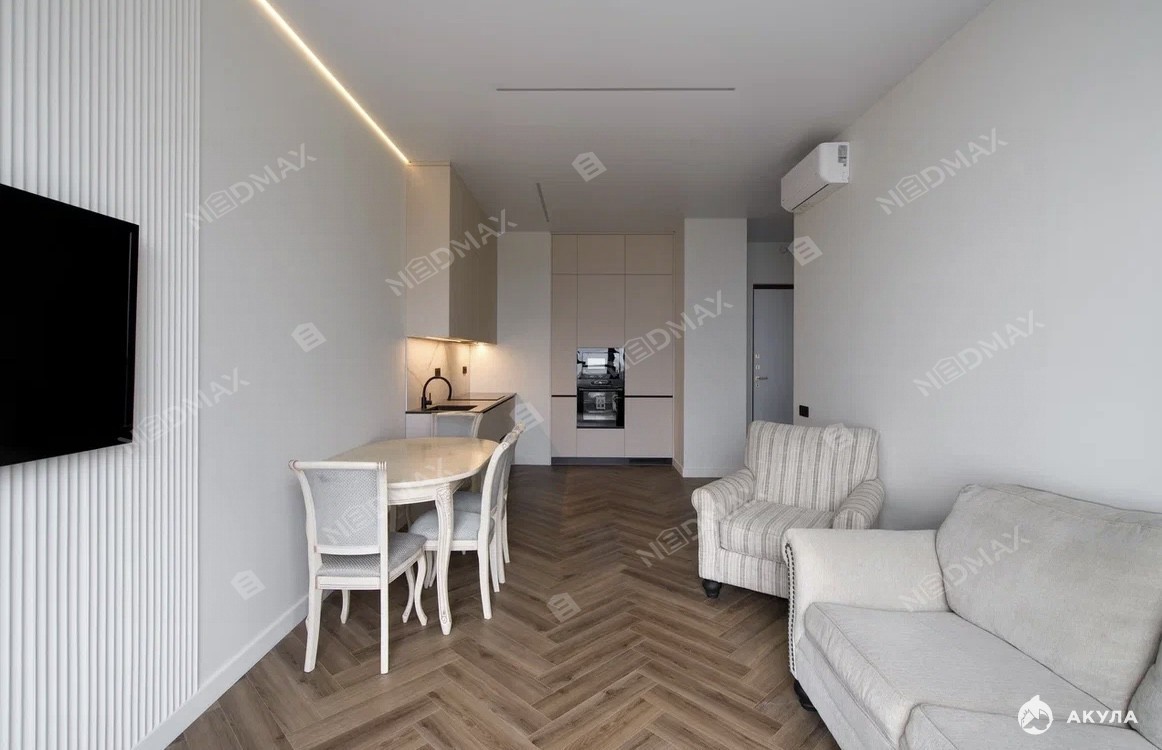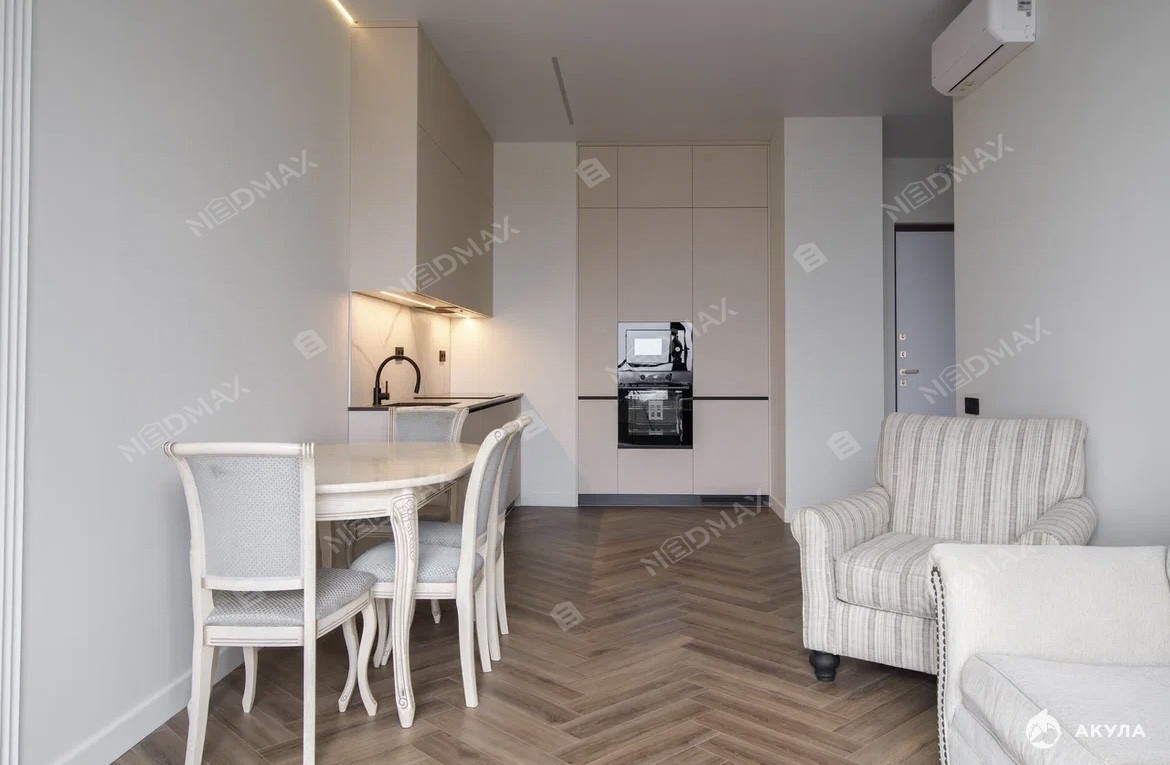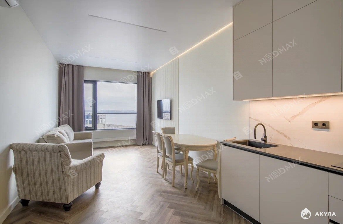 Каждая деталь этой квартиры продумана до мелочей. Высокие потолки и панорамные окна наполняют пространство светом, создавая атмосферу легкости и свободы. Современные отделочные материалы и стильная мебель делают интерьер поистине уникальным. Здесь вы сможете расслабиться после долгого дня или провести время с близкими в уютной обстановке.