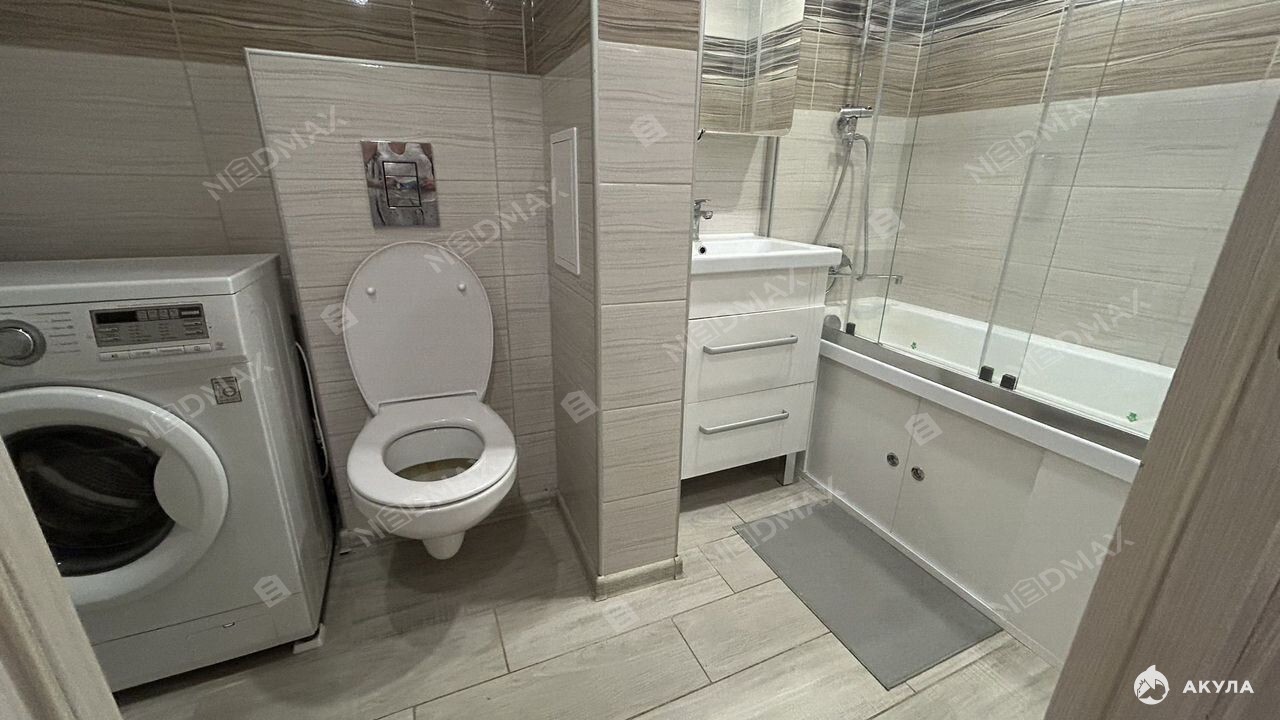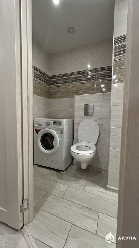 совмещённый санузел с современной сантехникой, стиральной машиной и тёплым полом;