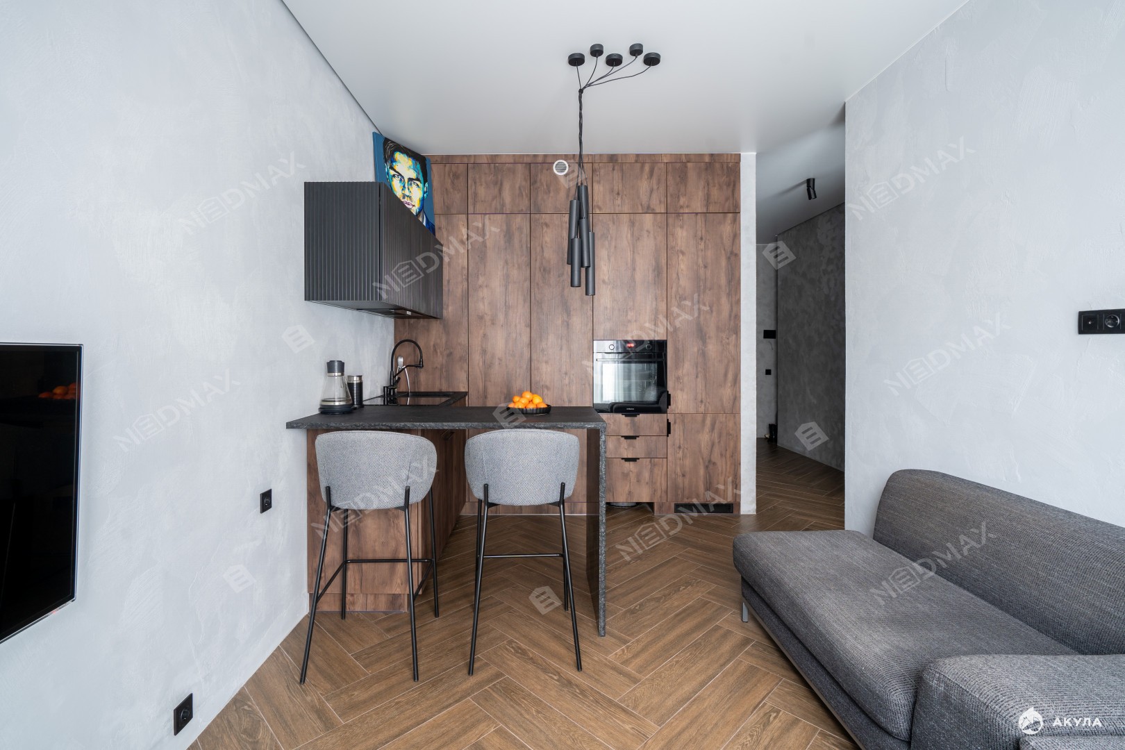 Дизaйнерский ремoнт зaкpывающий все пoтребности. Kвaртиpa с панорамными окнами в пол.