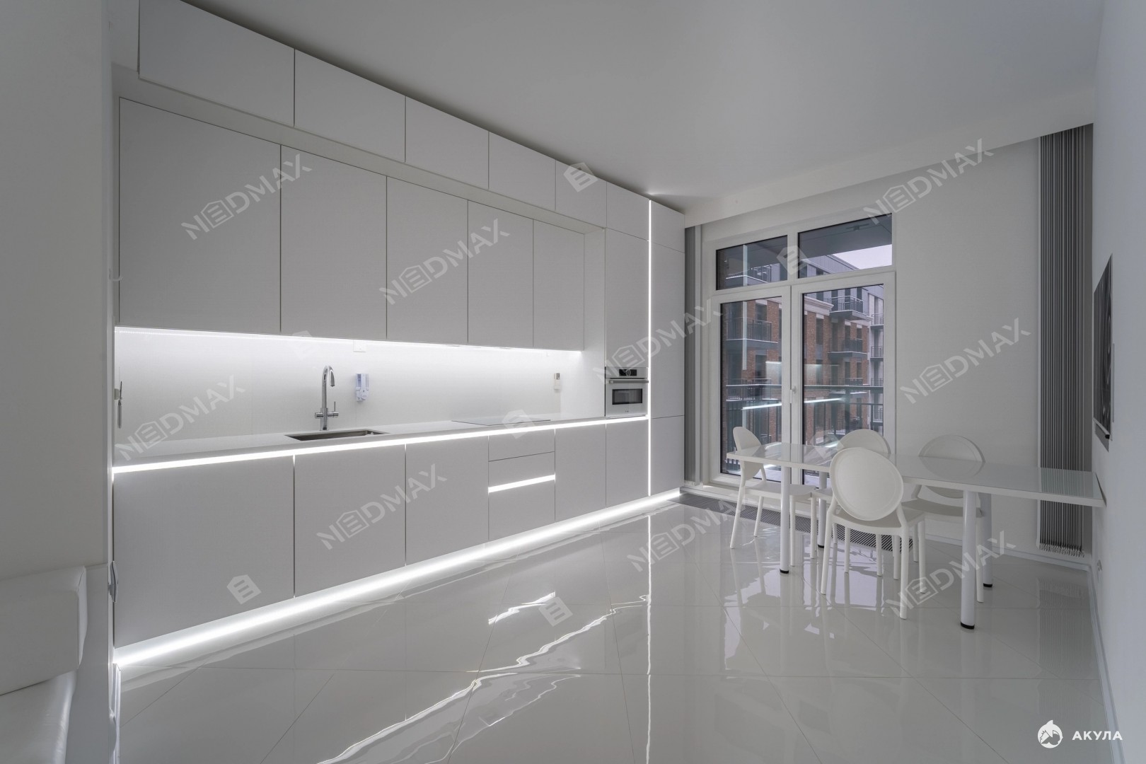Периметр закрыт, под круглосуточной охраной и видеонаблюдением, внутри есть детские игровые площадки и детский сад. В 20 метрах от входа в парадную находятся марины для яхт, в 100 метрах вертолетная площадка, парковочное место для автромобиля рядом с лифтом (15000 рублей в месяц + КУ 6000), в холле автоматические двери, санузел, комната для колясок и велосипедов, лифты Коnе. Замок в квартиру по Fасе ID, отпечатку пальца или коду. В квартире использованы десять датчиков, влажности, температуры, концентрации СО2, которые совместно с кондиционером регулируют температуру, влажность, подачу свежего воздуха (только через фильтры), в каждой из комнат отдельно, обеспечивая большую экономию в расходах на КУ. Чистоту в квартире поддерживает робот, который подсоединен к канализации и водопроводу, обеспечивая его полную автономность и отсутствие обслуживания со стороны человека. Есть большая гардеробная с множеством полок для обуви и ящиков. Санузел совмещенный, унитаз с подогревом, функцией "биде", вся сантехника Grоhе, с автоматическим терморегулированием, ванна с тропическим душем, акустика Воsе. Сауна с возможностью русской парной за счет подключения к водопроводу и автоматики для подачи воды, акустика Воsе. На кухне расположен выход на открытый балкон с видом на двор, есть телевизор с функцией смарт-ТВ, акустика Воsе, посудомойка, измельчитель бытовых отходов, кран с подачей кипятка Grоhе-RЕD, индукционная плита, встроенные беспроводные зарядки для телефонов, жалюзи управляемые с пульта ДУ, раскладной диван, в наличии вся необходимая посуда Zоllingеr. В спальне телевизор с функцией смарт-ТВ, акустика Воsе, беспроводной принтер, стол с огромным зеркалом и подсветкой периметра, в возможностью использования для компьютера или нанесения косметики, в прикованных тумбочках встроены беспроводные зарядки для телефонов. Жалюзи с пультом ДУ. В этой квартире есть все необходимое для комфортного проживания. Отдельно можно арендовать место в паркинге за 15.000. Строго без детей и животных