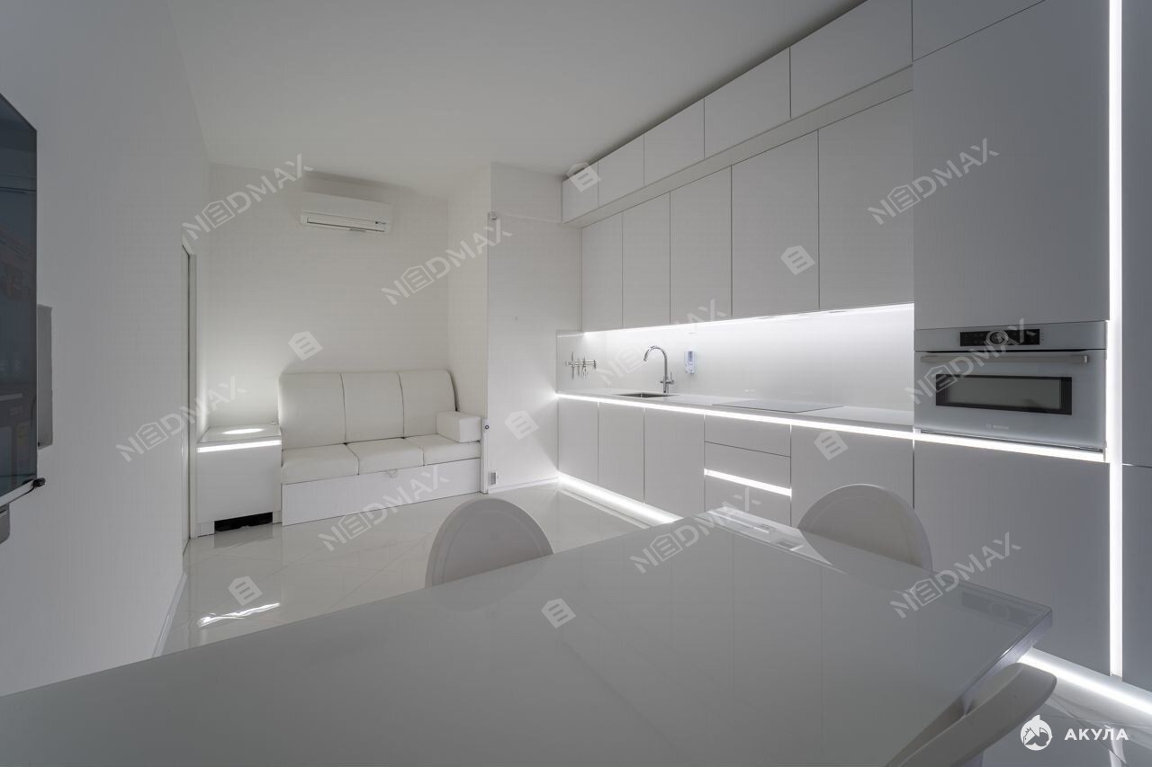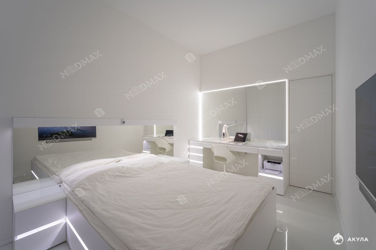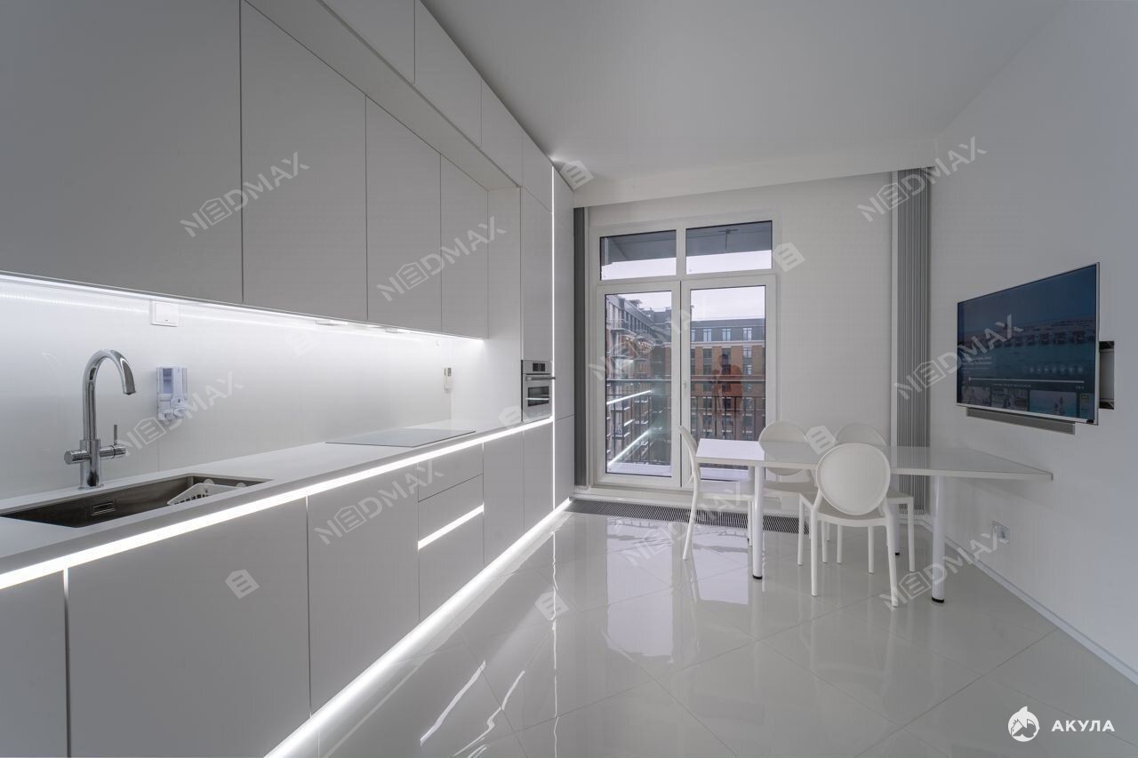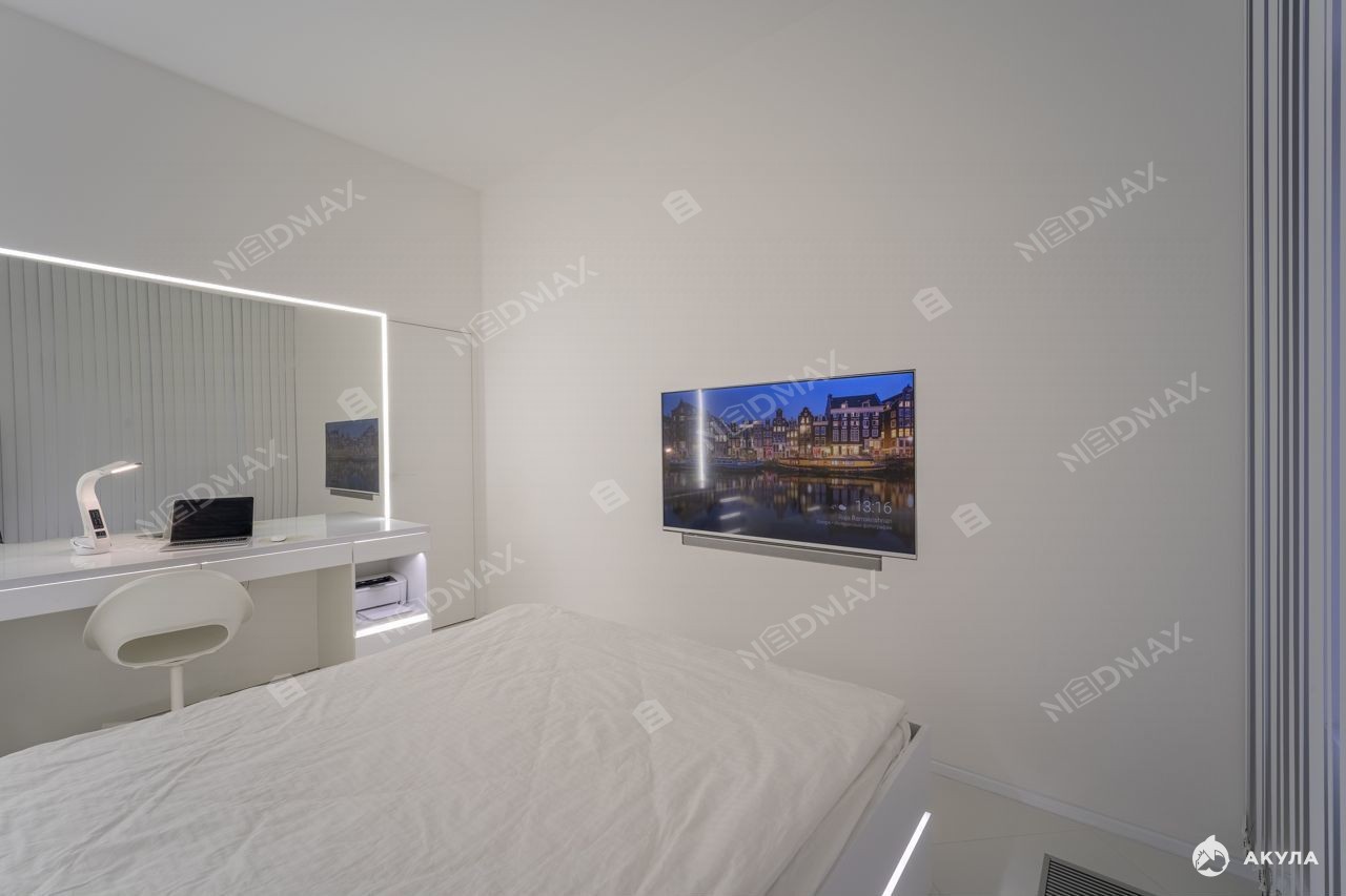 Периметр закрыт, под круглосуточной охраной и видеонаблюдением, внутри есть детские игровые площадки и детский сад. В 20 метрах от входа в парадную находятся марины для яхт, в 100 метрах вертолетная площадка, парковочное место для автромобиля рядом с лифтом (15000 рублей в месяц + КУ 6000), в холле автоматические двери, санузел, комната для колясок и велосипедов, лифты Коnе. Замок в квартиру по Fасе ID, отпечатку пальца или коду. В квартире использованы десять датчиков, влажности, температуры, концентрации СО2, которые совместно с кондиционером регулируют температуру, влажность, подачу свежего воздуха (только через фильтры), в каждой из комнат отдельно, обеспечивая большую экономию в расходах на КУ. Чистоту в квартире поддерживает робот, который подсоединен к канализации и водопроводу, обеспечивая его полную автономность и отсутствие обслуживания со стороны человека. Есть большая гардеробная с множеством полок для обуви и ящиков. Санузел совмещенный, унитаз с подогревом, функцией "биде", вся сантехника Grоhе, с автоматическим терморегулированием, ванна с тропическим душем, акустика Воsе. Сауна с возможностью русской парной за счет подключения к водопроводу и автоматики для подачи воды, акустика Воsе. На кухне расположен выход на открытый балкон с видом на двор, есть телевизор с функцией смарт-ТВ, акустика Воsе, посудомойка, измельчитель бытовых отходов, кран с подачей кипятка Grоhе-RЕD, индукционная плита, встроенные беспроводные зарядки для телефонов, жалюзи управляемые с пульта ДУ, раскладной диван, в наличии вся необходимая посуда Zоllingеr. В спальне телевизор с функцией смарт-ТВ, акустика Воsе, беспроводной принтер, стол с огромным зеркалом и подсветкой периметра, в возможностью использования для компьютера или нанесения косметики, в прикованных тумбочках встроены беспроводные зарядки для телефонов. Жалюзи с пультом ДУ. В этой квартире есть все необходимое для комфортного проживания. Отдельно можно арендовать место в паркинге за 15.000. Строго без детей и животных