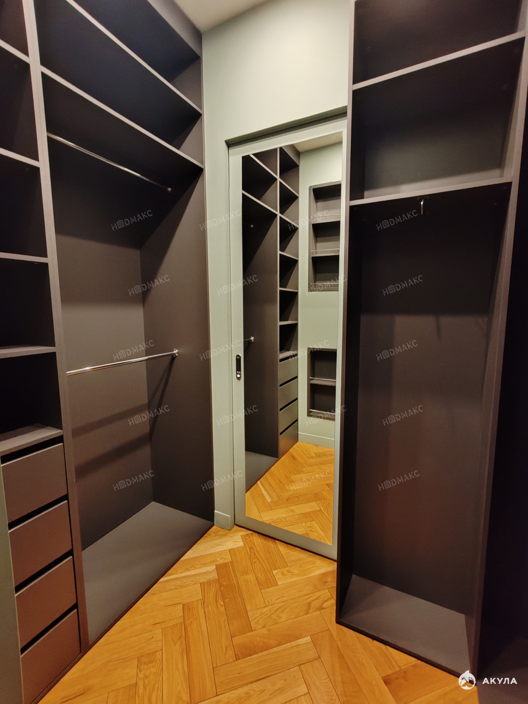 Грамотно продуманная система хранения, помимо обилия встроенных шкафов есть и гардеробная в спальне.