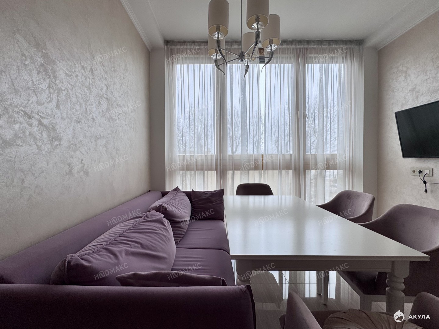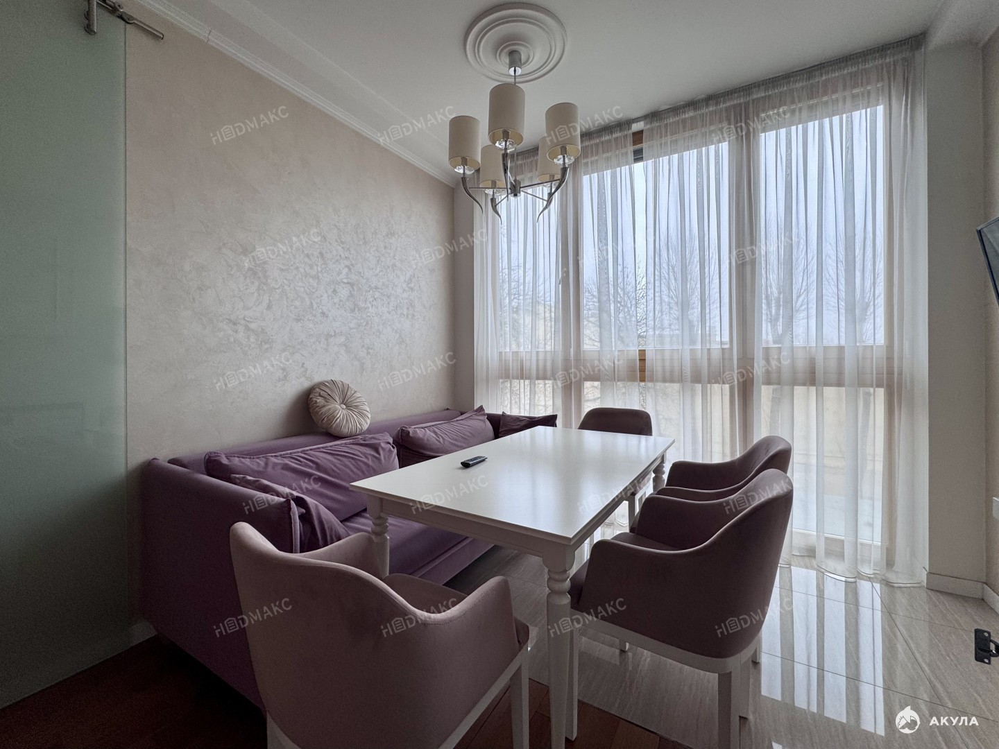 В квартире выполнен качественный евроремонт с использованием дорогих отделочных материалов. Планировка - спальная комната, кухня - гостиная, санузел с душевой. Много мест для хранения. Комфортабельная мебель, современная техника. Климат контроль, бойлер, теплый пол. Высокие потолки 3, 1 м с окнами в пол.