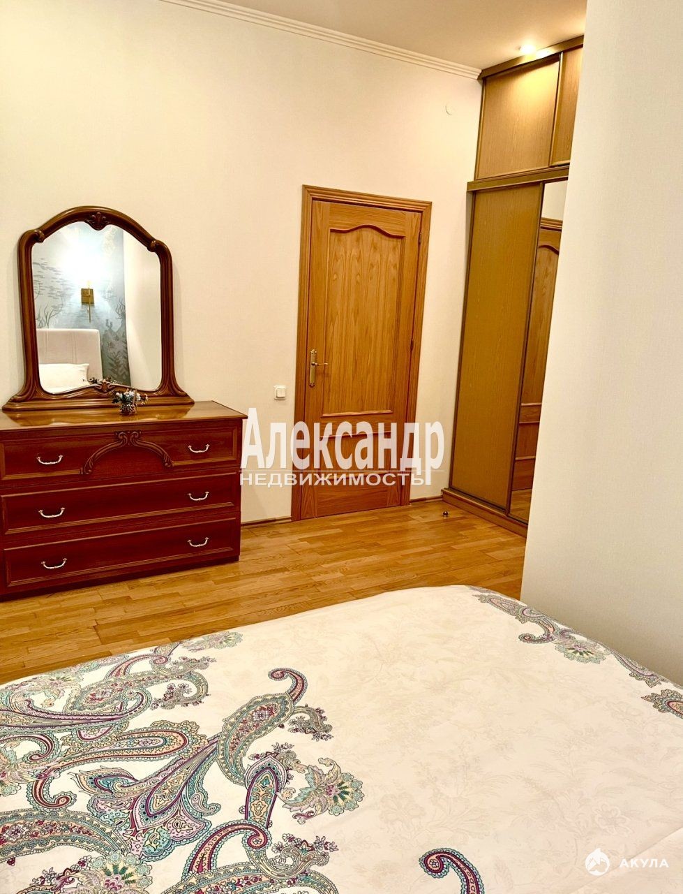 Спальня: новая кровать с ортопедическим матрасом, вместительный шкаф-купе, комод. Площадь-14, 1 м2