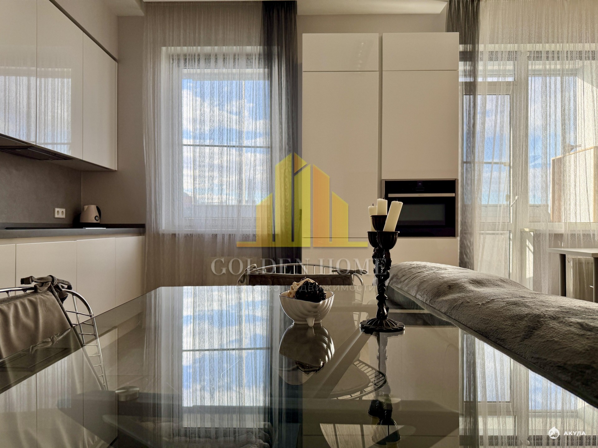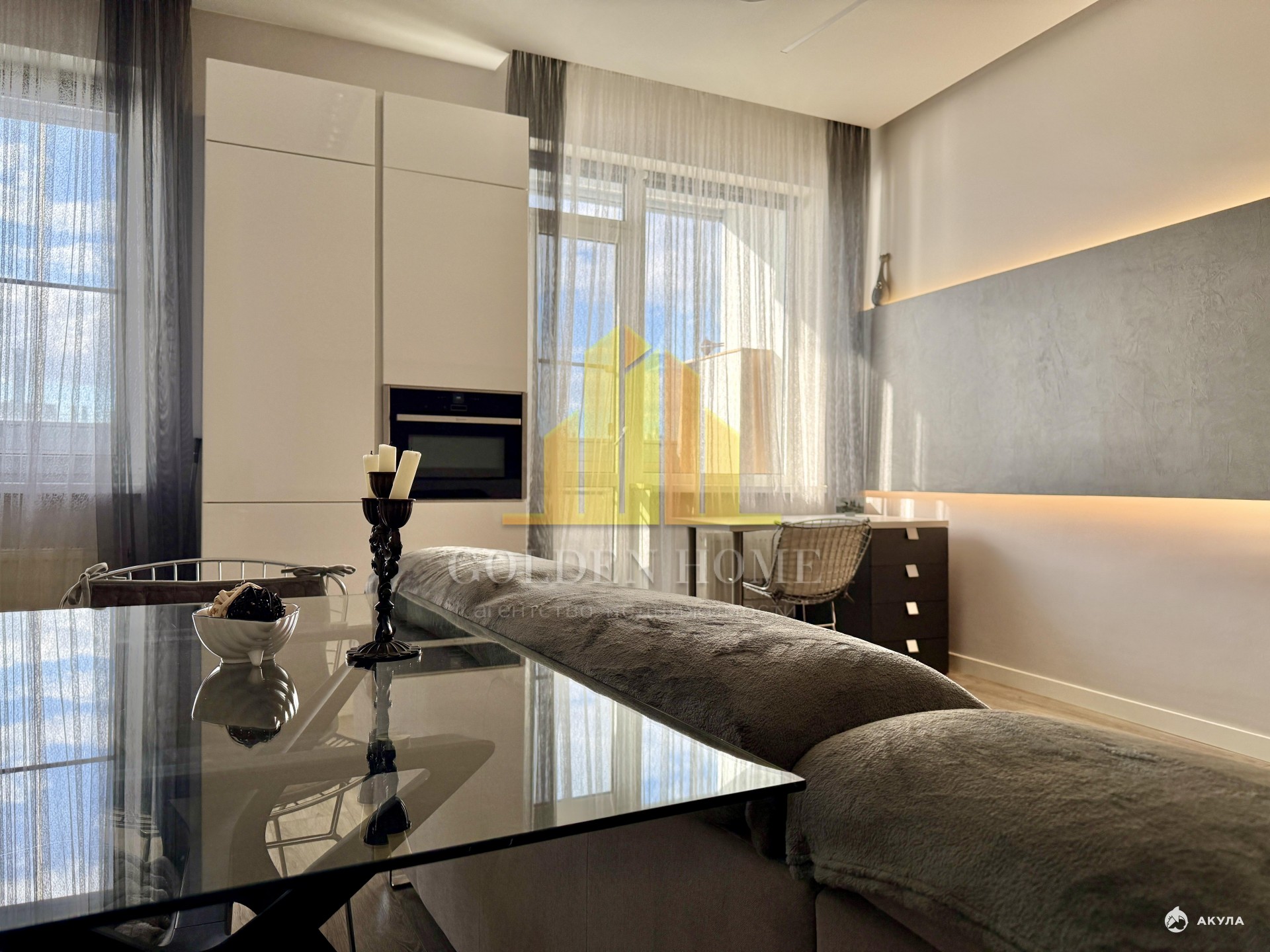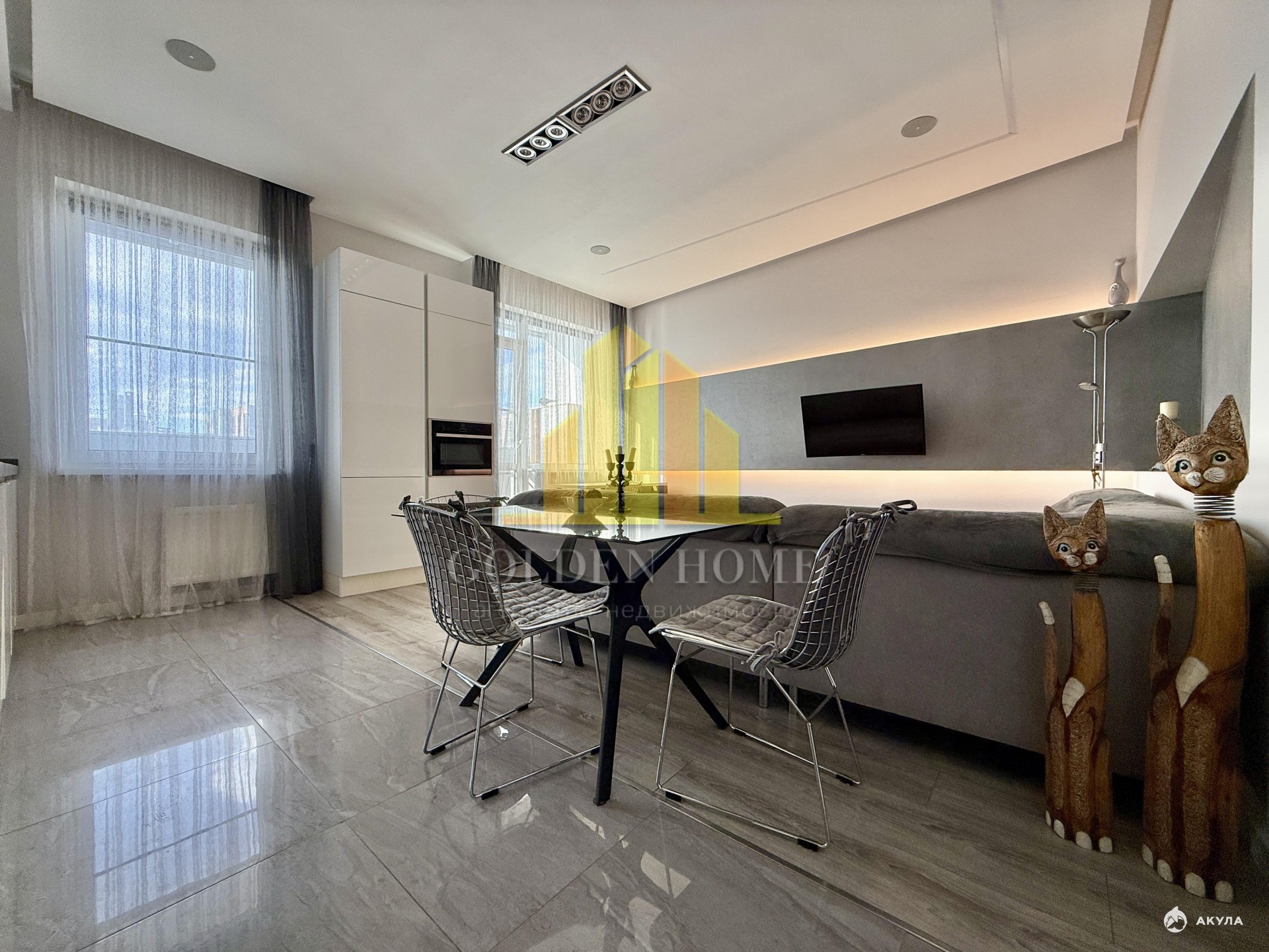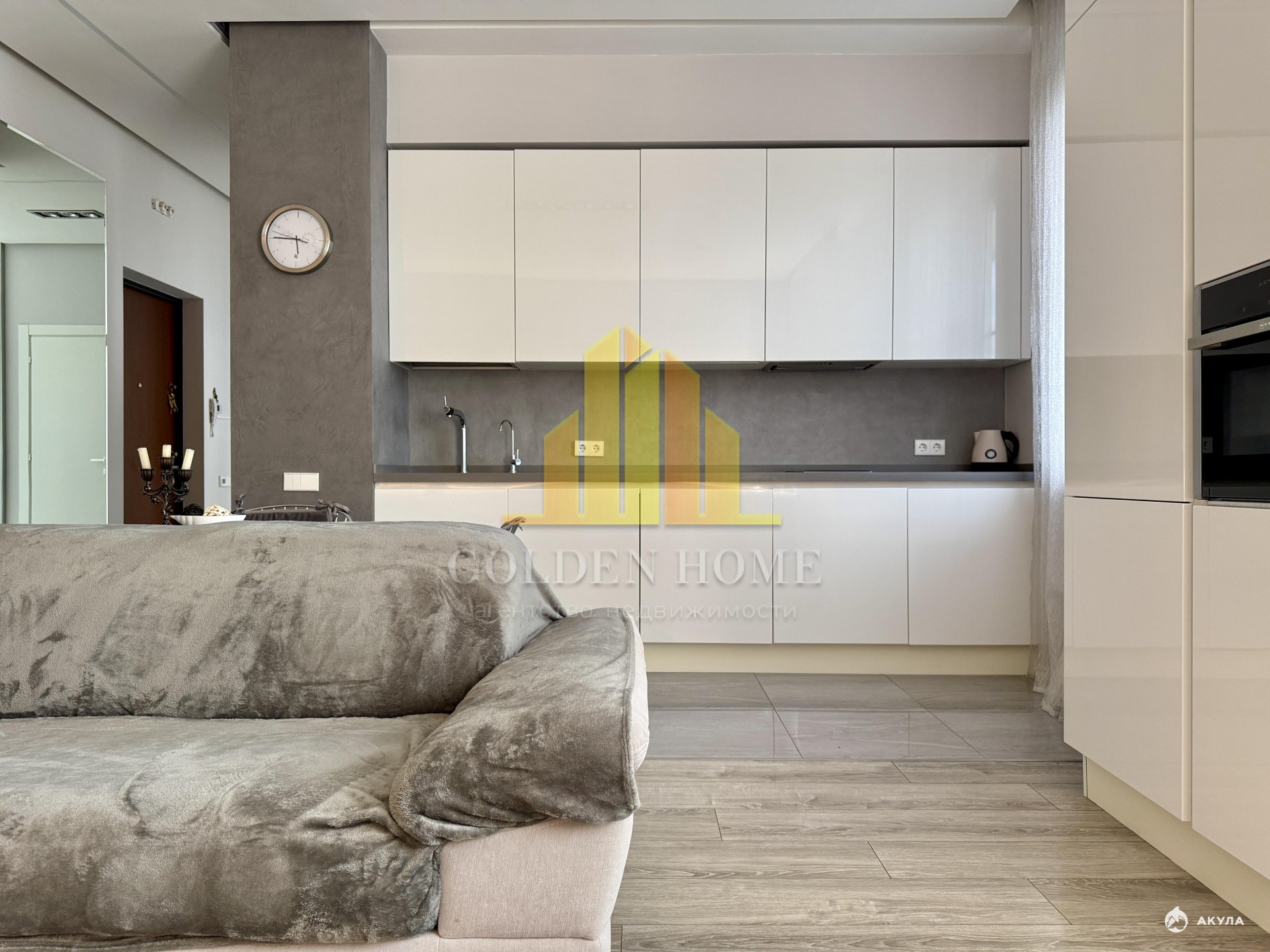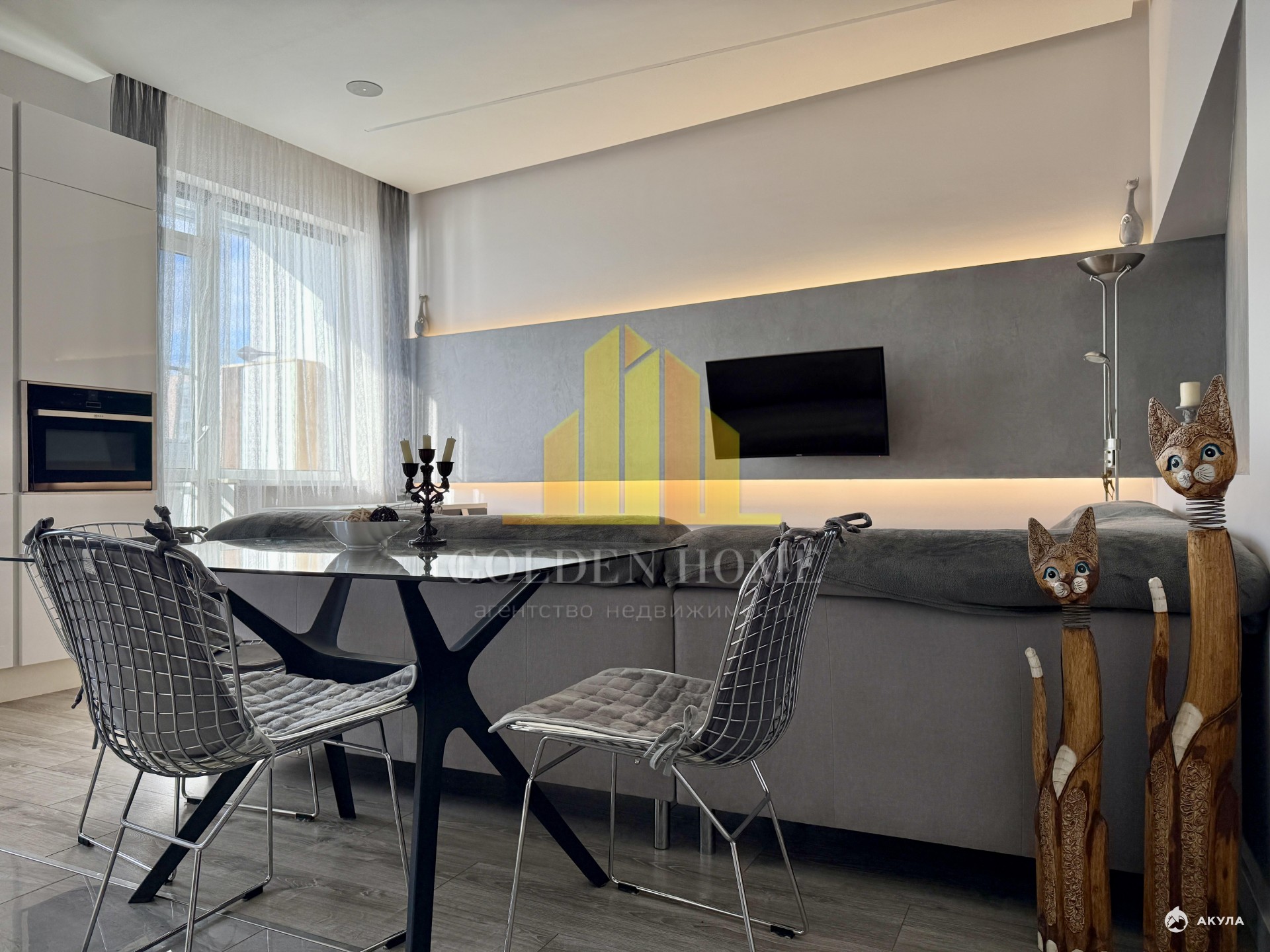 Квартира с дизайнерским ремонтом полностью укомплектована: холодильник, посудомоечная и стиральная машины, телевизор, раздельный санузел с душевой кабиной и уютная лоджия для отдыха на свежем воздухе.
