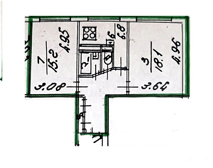 Общая площадь квартиры 52 кв.м., площадь комнат 15+18 кв.м., комнаты раздельные, кухня 6, 5 кв.м., раздельный санузел, закрытый тамбур на две квартиры. В квартире есть вся необходимая мебель и техника. В комнатах сделан свежий ремонт, в одной комнате постелен ламинат, в другой паркет, окна во двор.