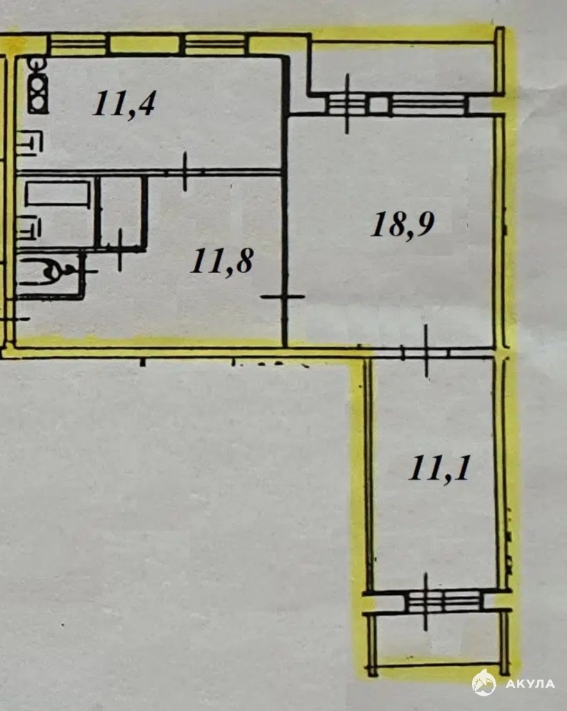 Арт. 46498863. Мидом. Эксперт. Недвижимость предлагает вашему вниманию 2х комнатую квартиру с большой кухней, где не будет тесно даже большой семье!