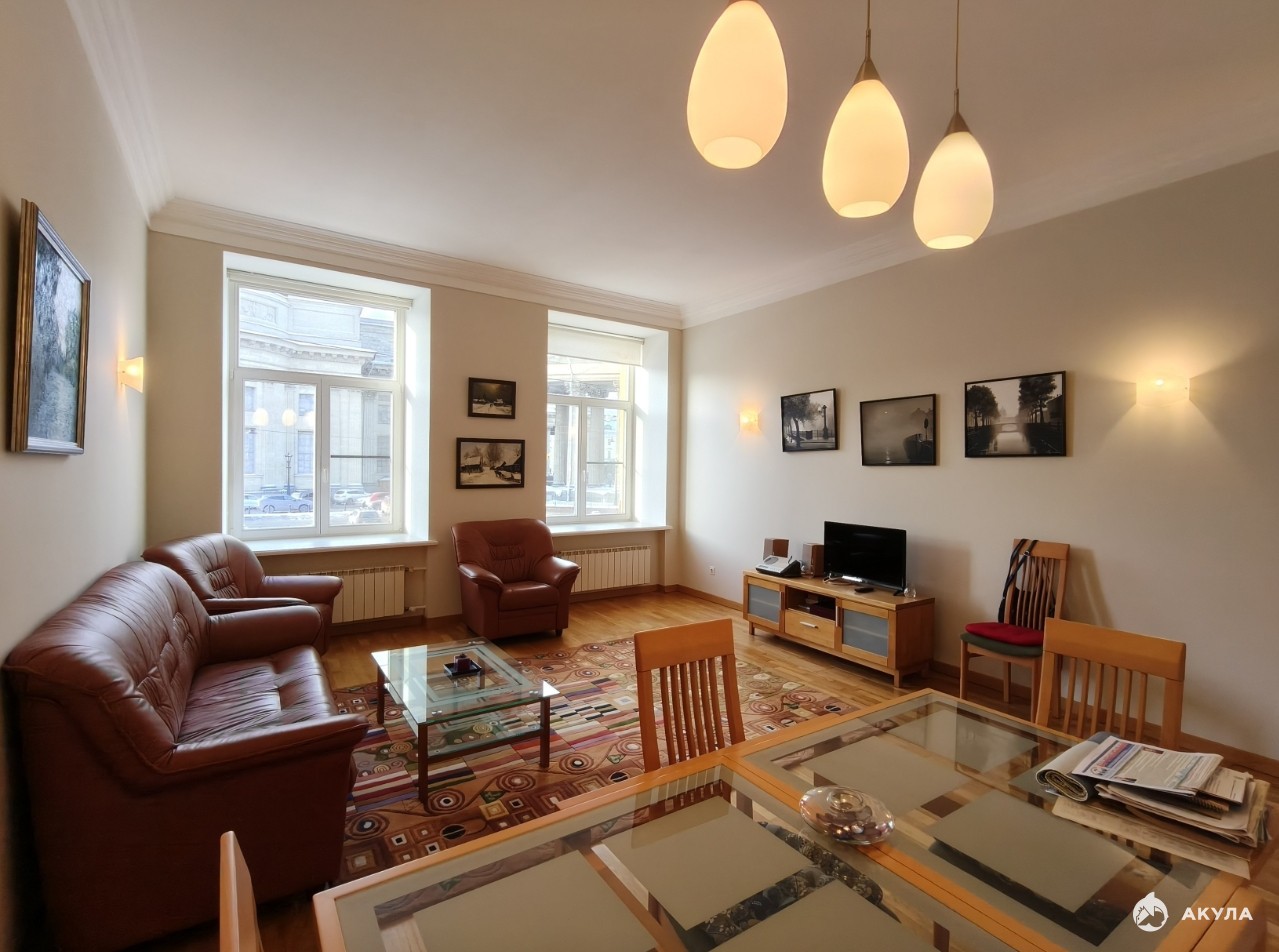 Сдается на длительный срок квартира с видом на Казанский собор и канал Грибоедова. Две спальни выходят в тихий закрытый двор, где есть парковка для жильцов, а гостиная на канал Грибоедова.