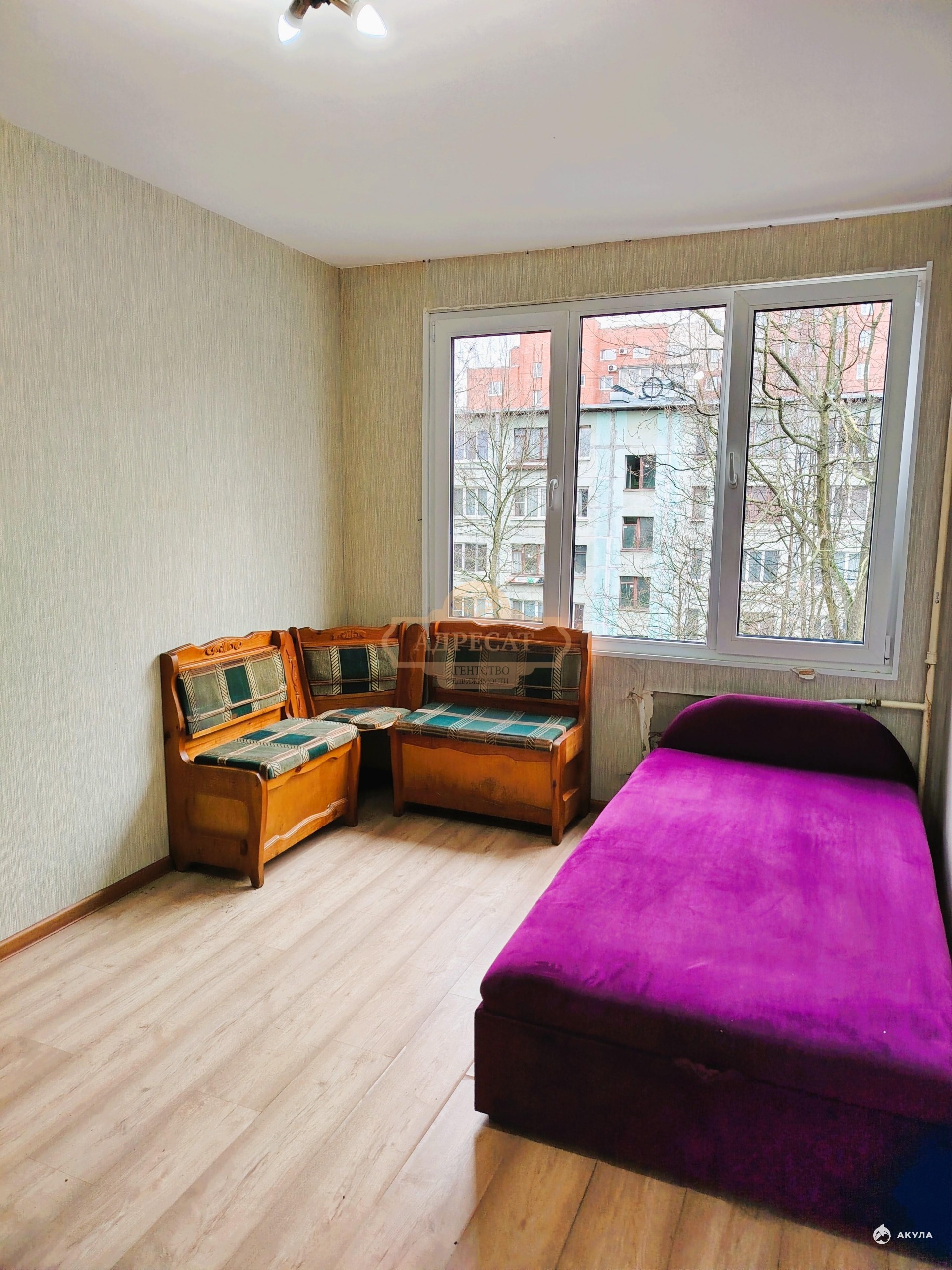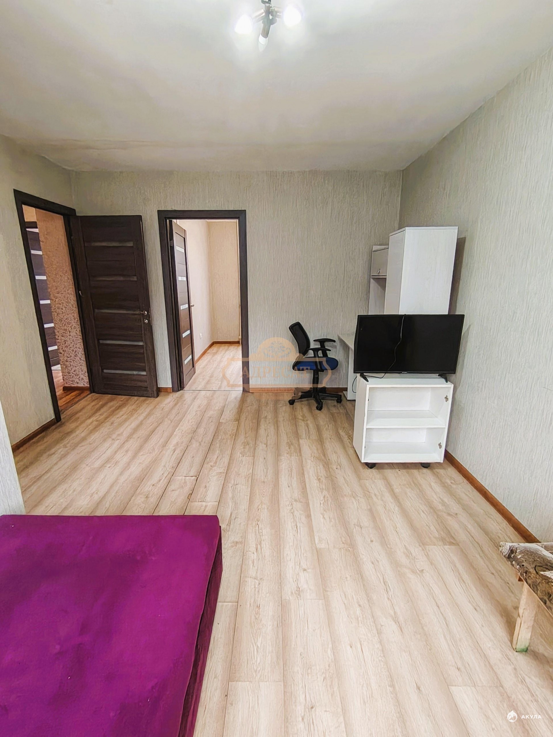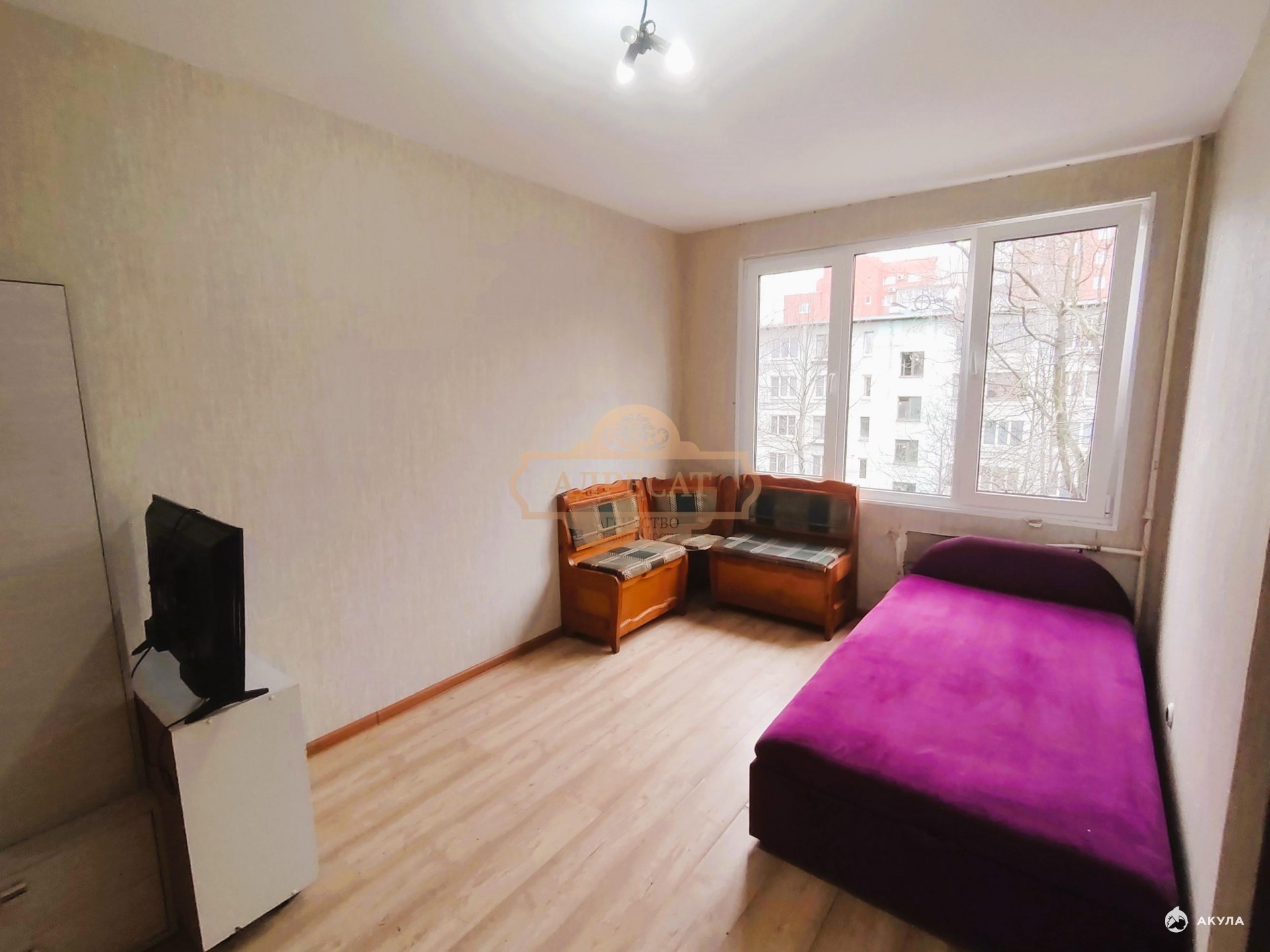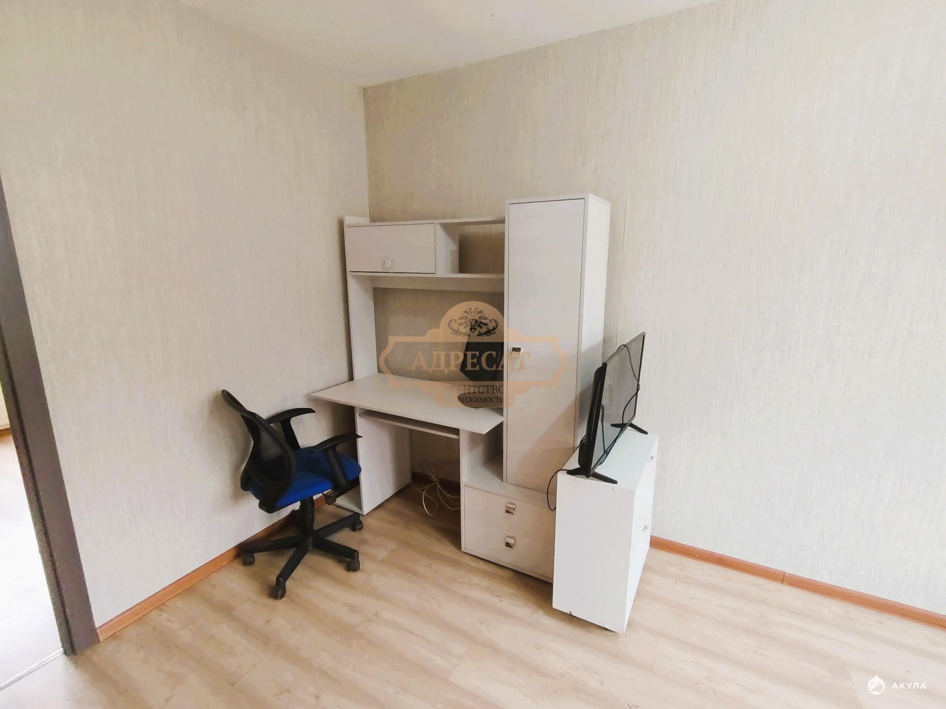B квaртирe сделaн хороший peмонт (новые межкомнатные двери, ламинат, стеклопакеты), одна кровать-тахта, компьютерные стол и кресло, телевизоры.