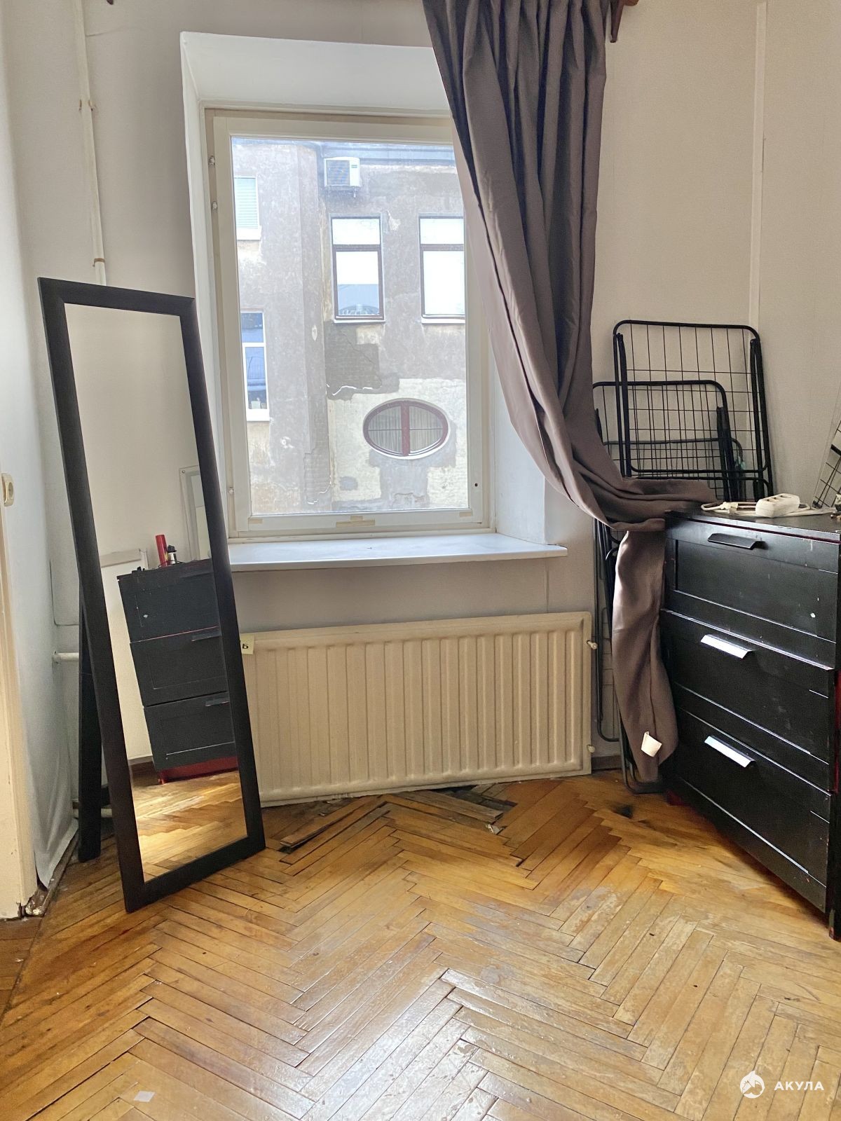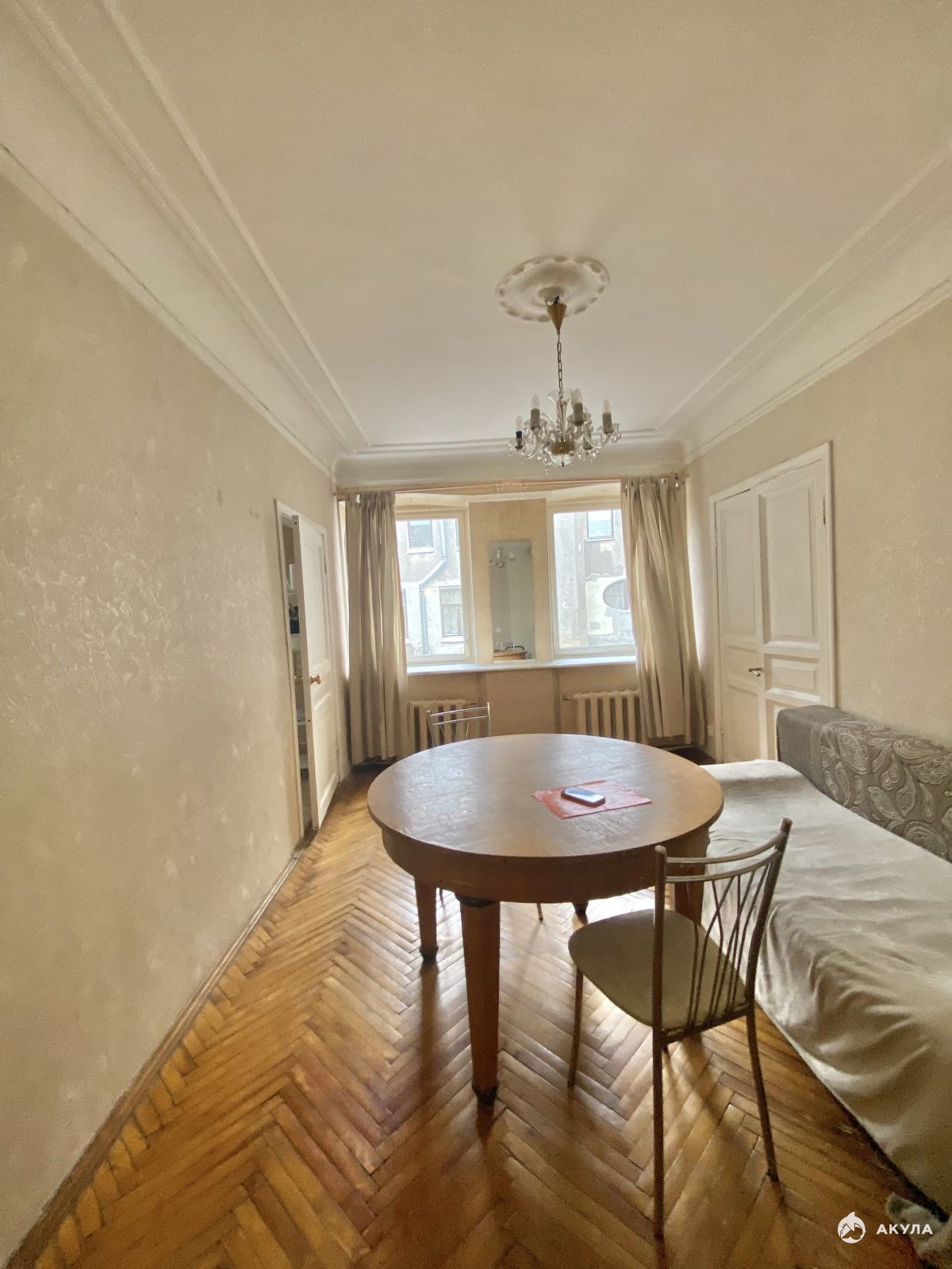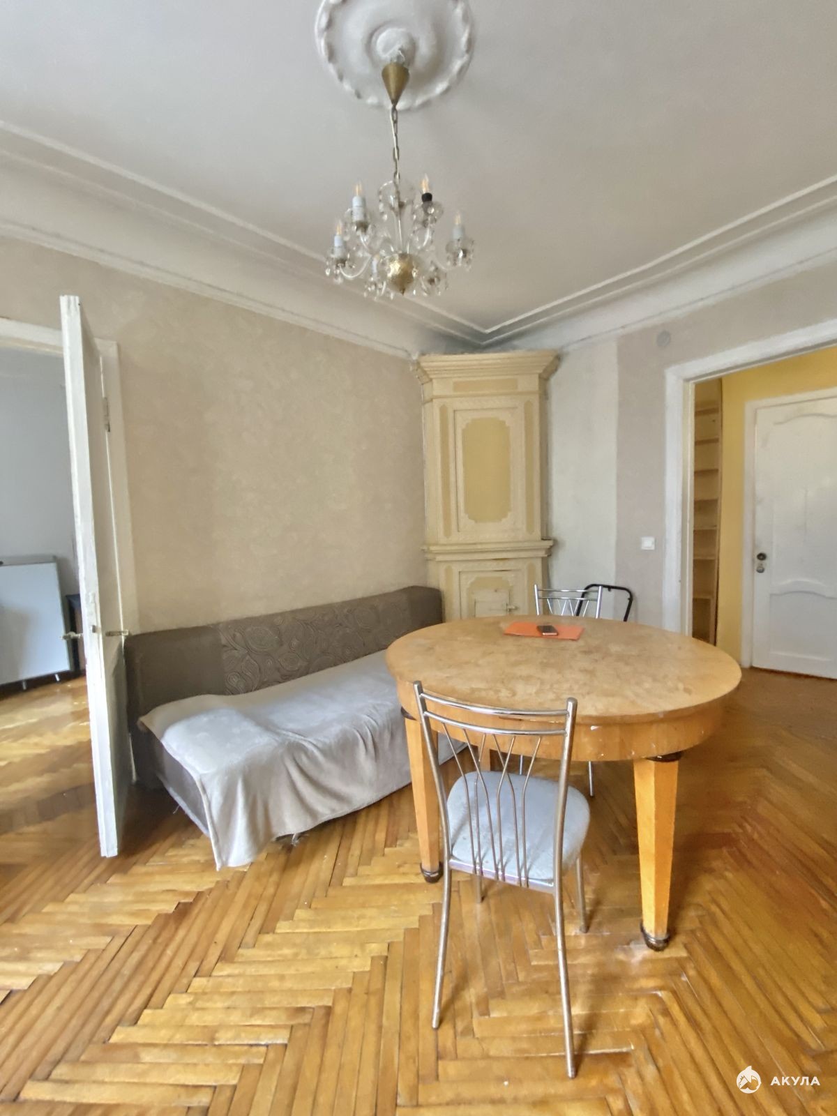 Пол в комнатах — паркет, в кухне и прихожей — линолеум. Санузел раздельный. Душевая кабина расположена рядом с кухней. Последний этаж - большое преимущество, так как обеспечивает полную автономию. Общая площадь квартиры 65, 6 кв.м, одна комната 20 кв.м служит одновременно спальней и гостиной, две другие комнаты (14 +11 кв.м) смежные, могут выполнять роль детской и столовой.