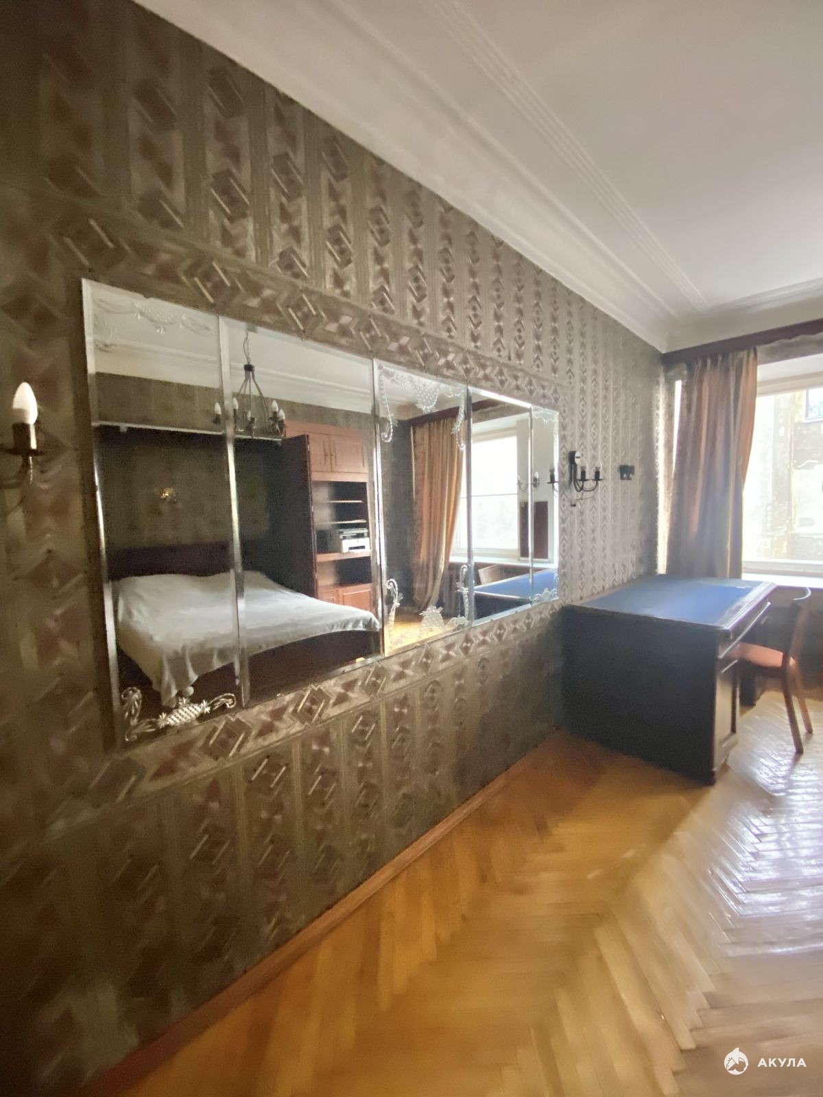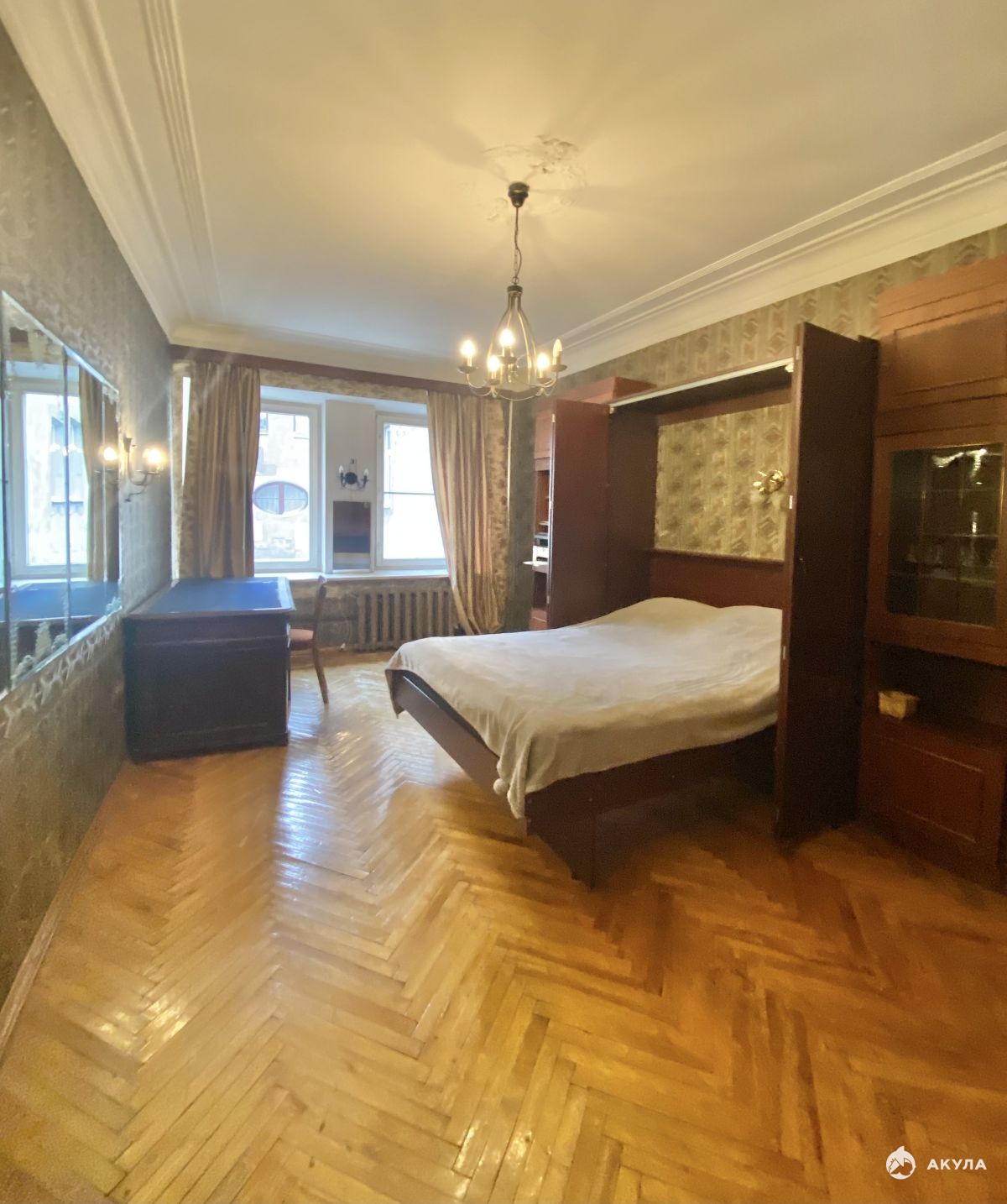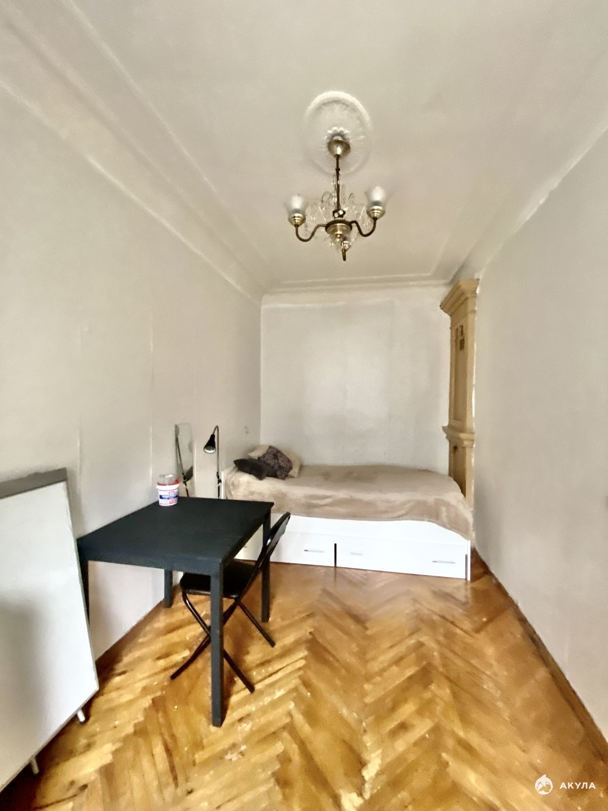 Пол в комнатах — паркет, в кухне и прихожей — линолеум. Санузел раздельный. Душевая кабина расположена рядом с кухней. Последний этаж - большое преимущество, так как обеспечивает полную автономию. Общая площадь квартиры 65, 6 кв.м, одна комната 20 кв.м служит одновременно спальней и гостиной, две другие комнаты (14 +11 кв.м) смежные, могут выполнять роль детской и столовой.