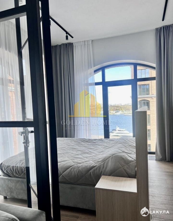 Апартаменты с просторной кухней-гостиной. Идеальный вид из панорамных окон в пол — на Малую Неву, стадион Газпром арена и залив.