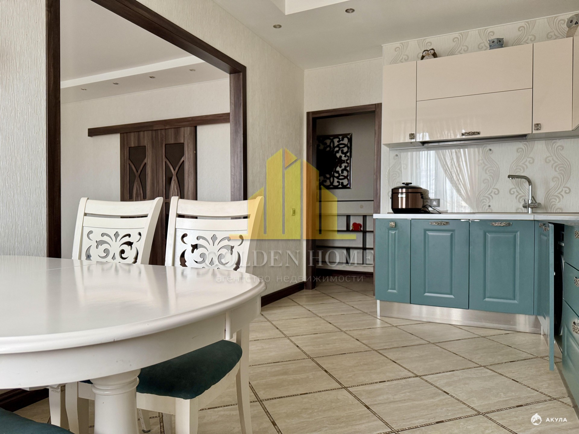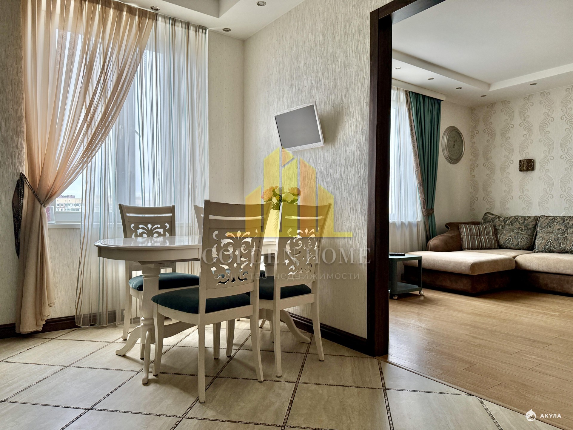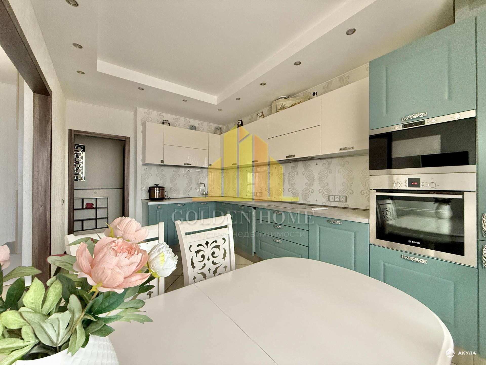 Общая площадь — 100 кв. м, высота потолков — 2, 8 м, продуманная планировка делает пространство максимально комфортным для жизни. Интерьер выполнен в современном стиле с использованием качественных материалов. Квартира полностью меблирована и оснащена всей необходимой техникой: кухонный гарнитур, холодильник, посудомоечная машина, стиральная машина, плита, телевизор.