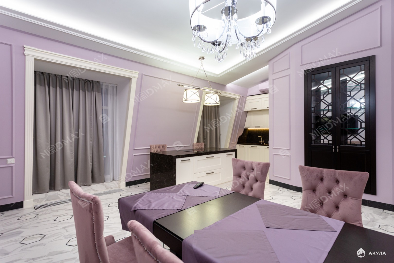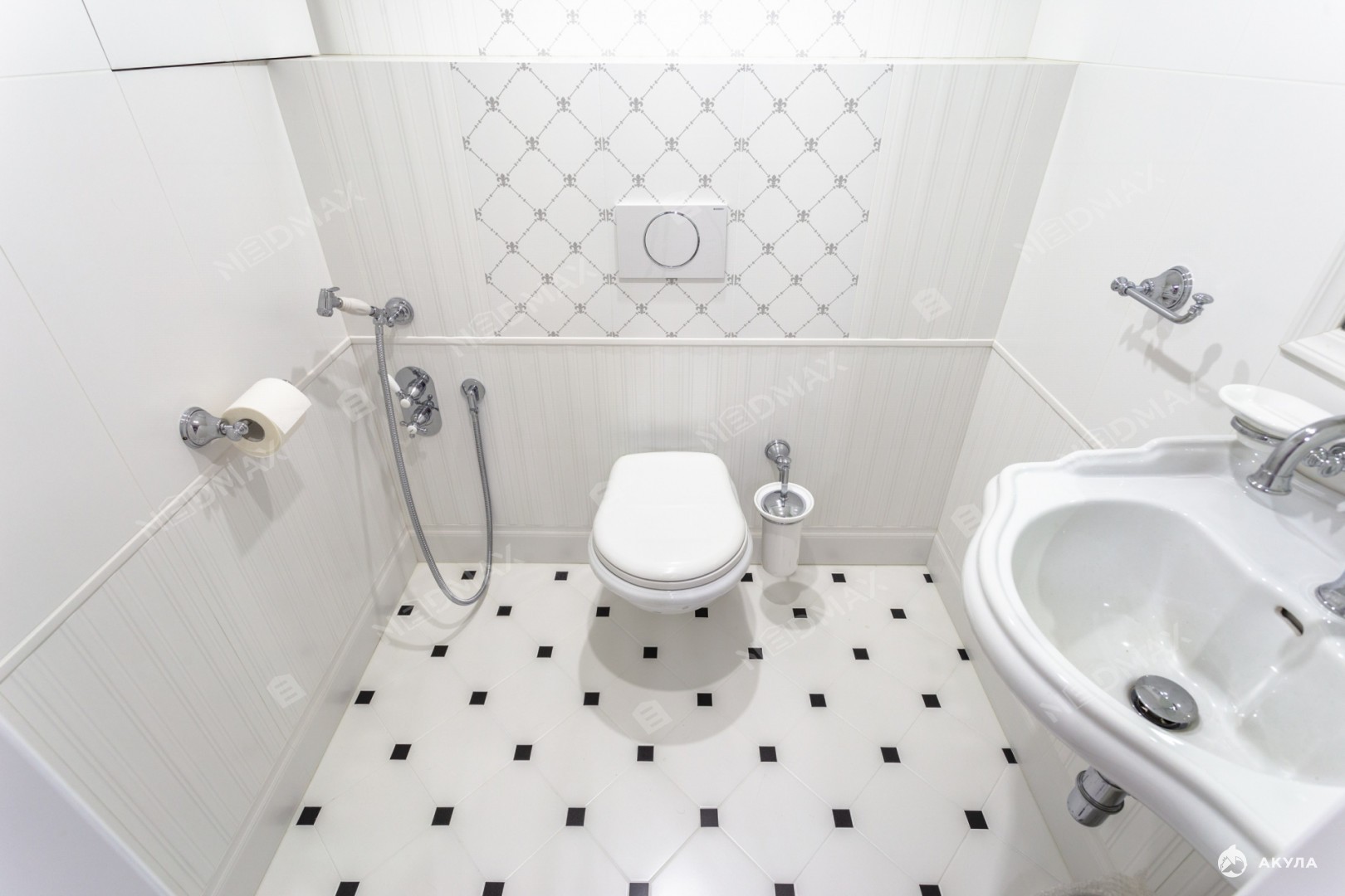 Всё наполнение новое. Кухня соединена с гостиной, спальня, двухуровневая детская комната, рассчитанная на двух малышей.. Три санузла: два туалета и одна ванная комната.