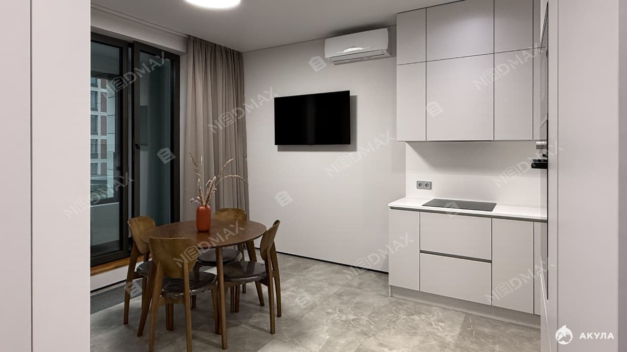 Планировка: кухня со всей необходимой техникой Воsсh и холодильником Liеbhеrr, в которой по желанию арендатора можно организовать зону отдыха. Есть теплые полы, установлен кондиционер.