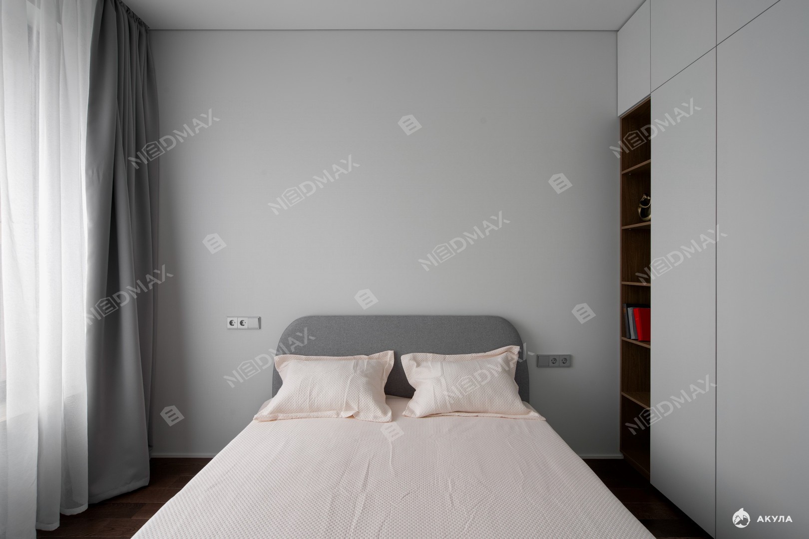 Две изолированных комнаты: спальня и гостиная, где организовано рабочее место.