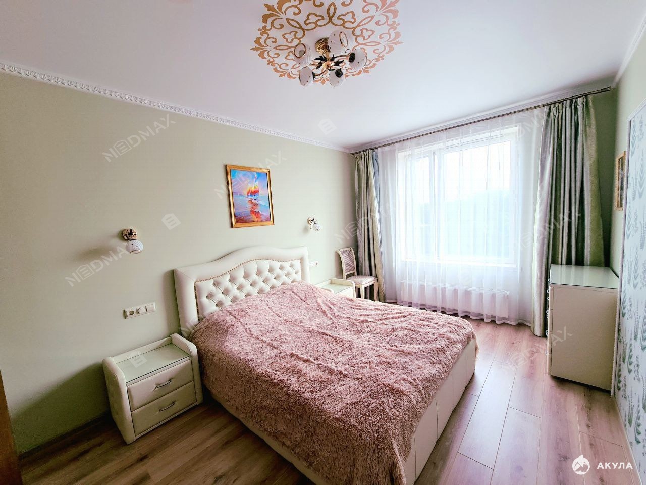 Две спальных комнаты, гостиная, два санузла: с ванной и гостевой. Есть балкон.