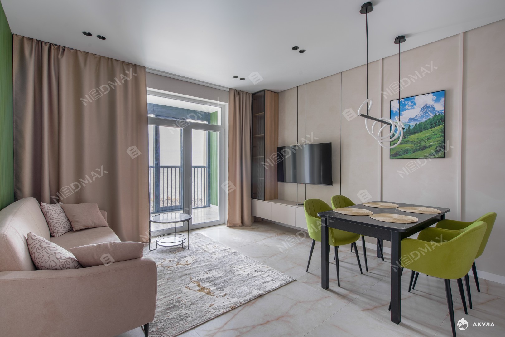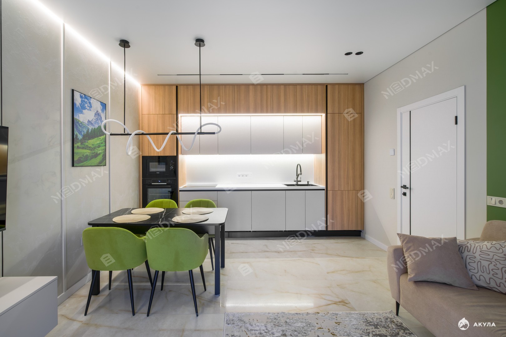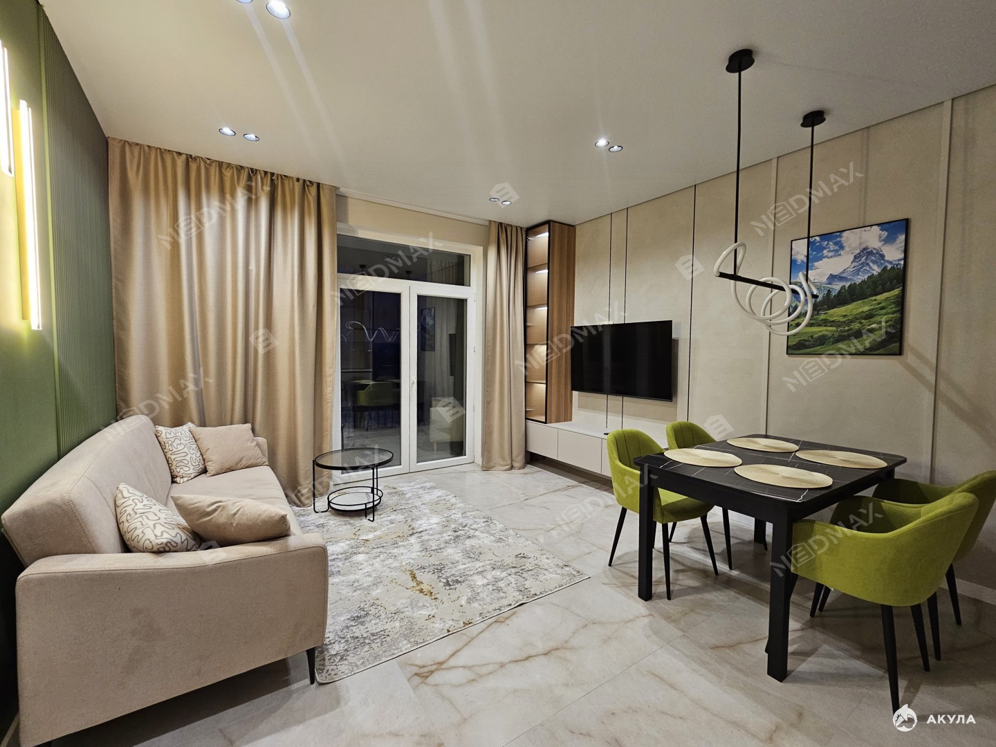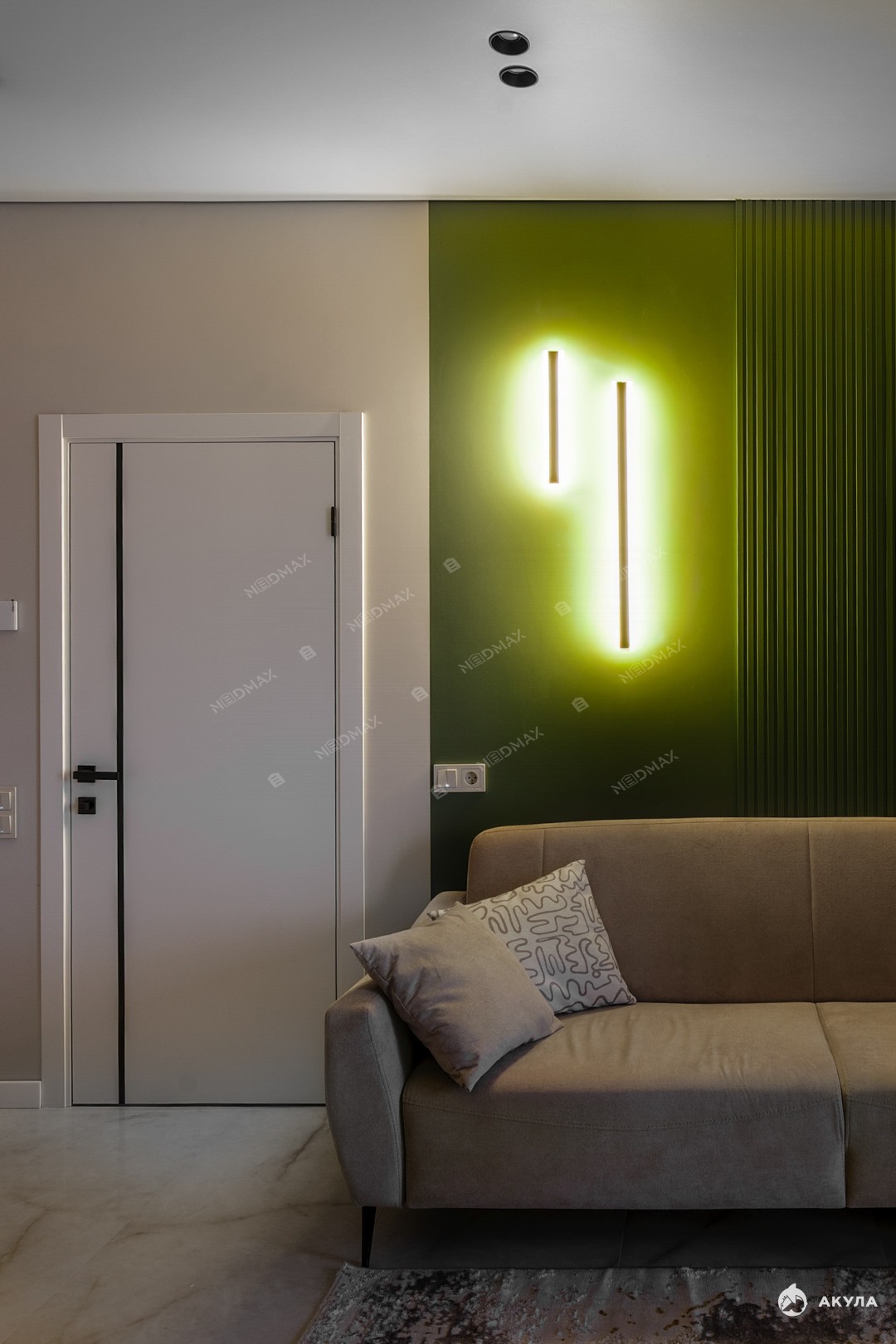 Много мест для хранения вещей. Два санузла: один с ванной, второй гостевой. В гостиной установлен кондиционер. В квартире много сценариев света.