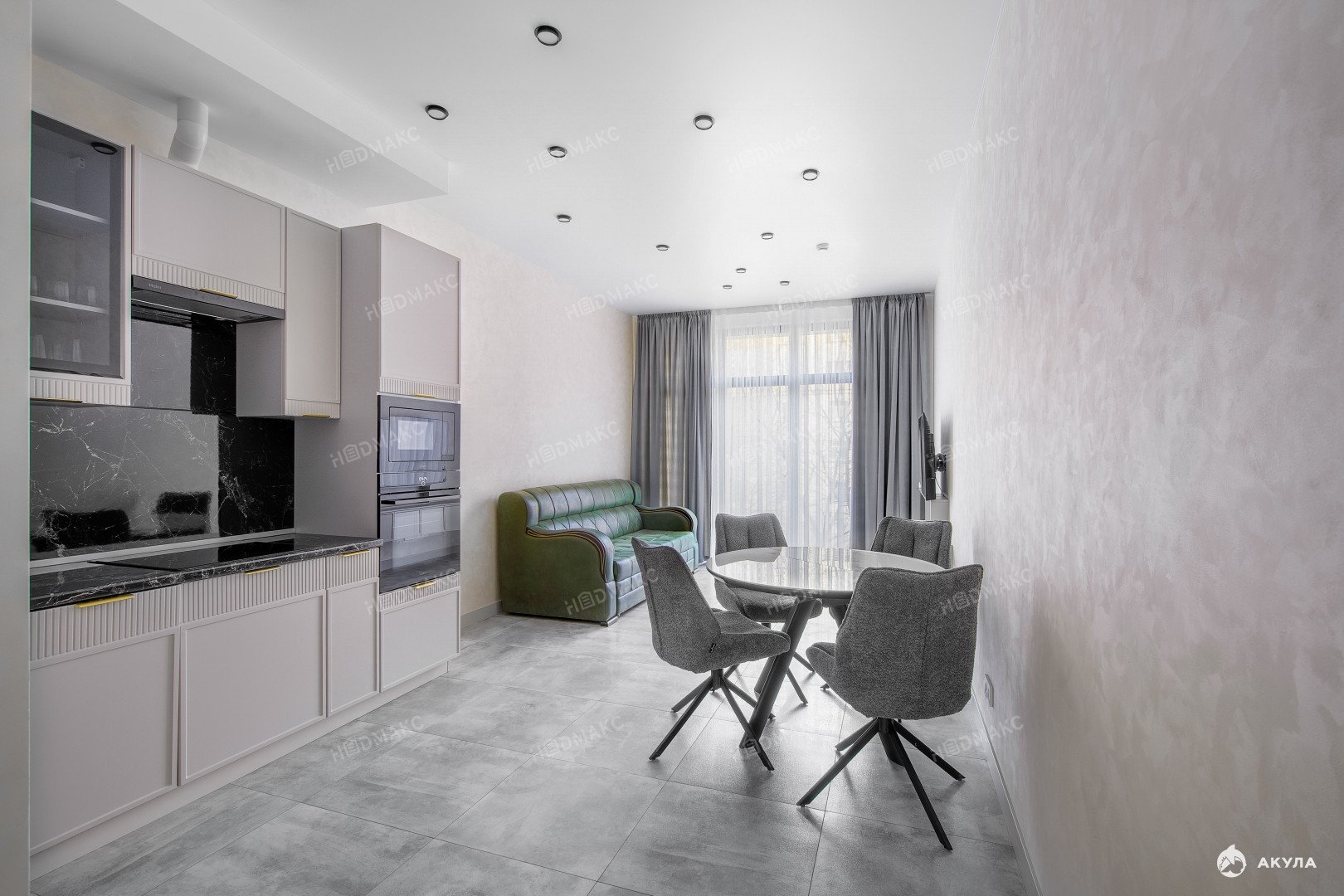 Эстетика: стены квартиры покрыты декоративной штукатуркой, что создает ощущение лоска и роскоши.