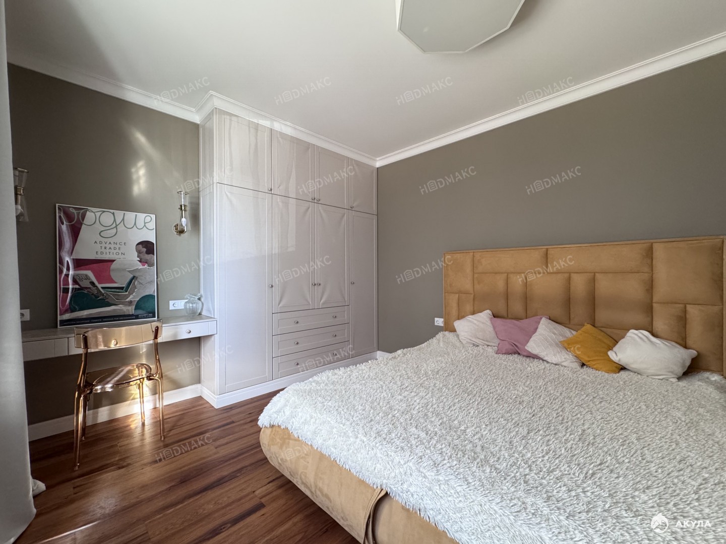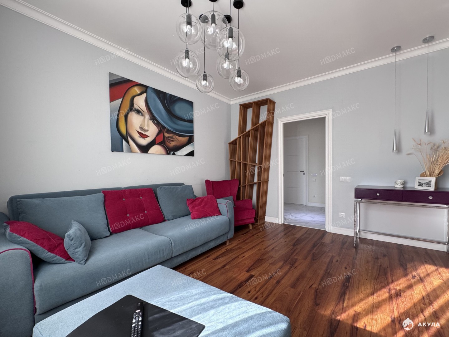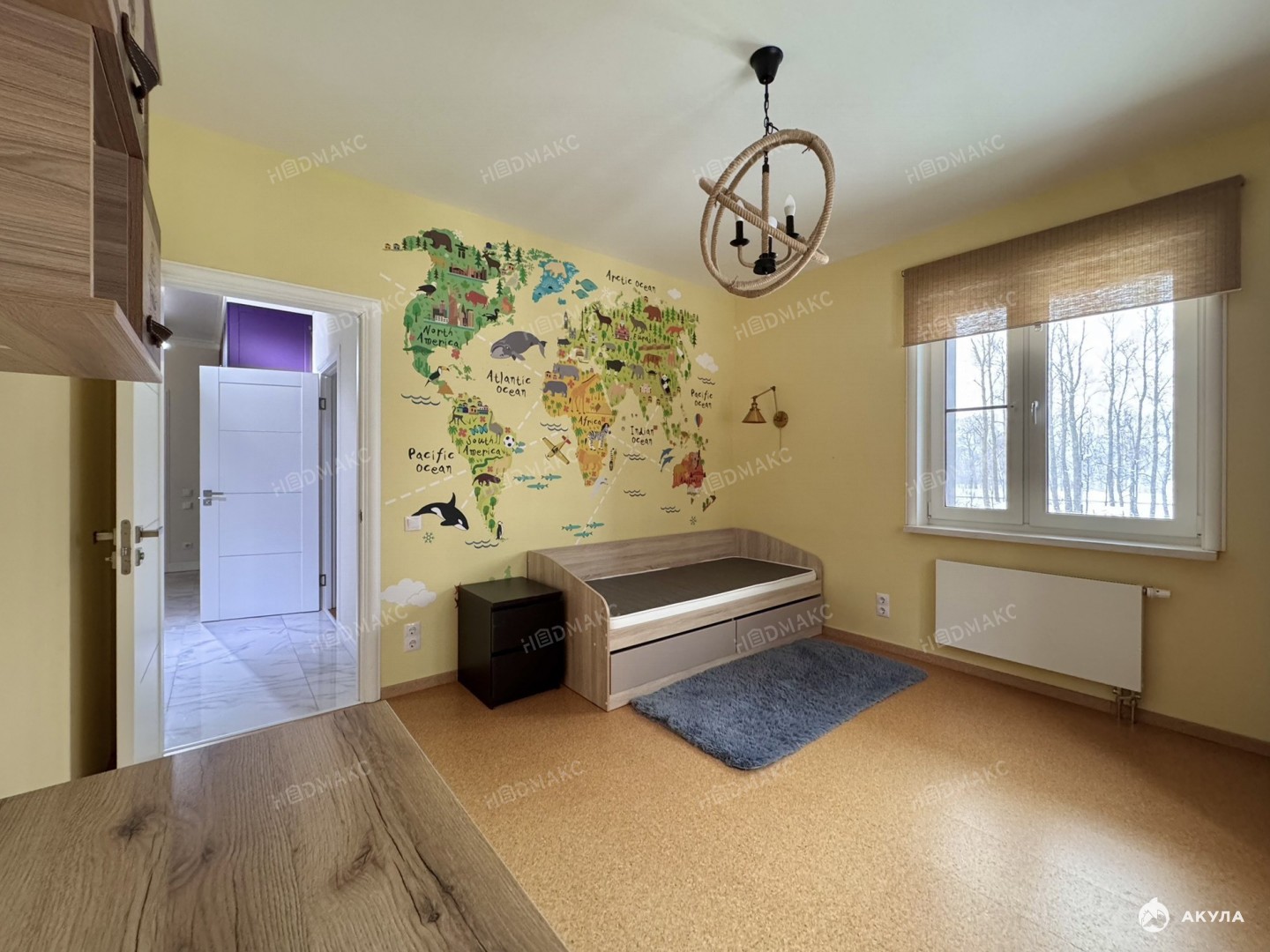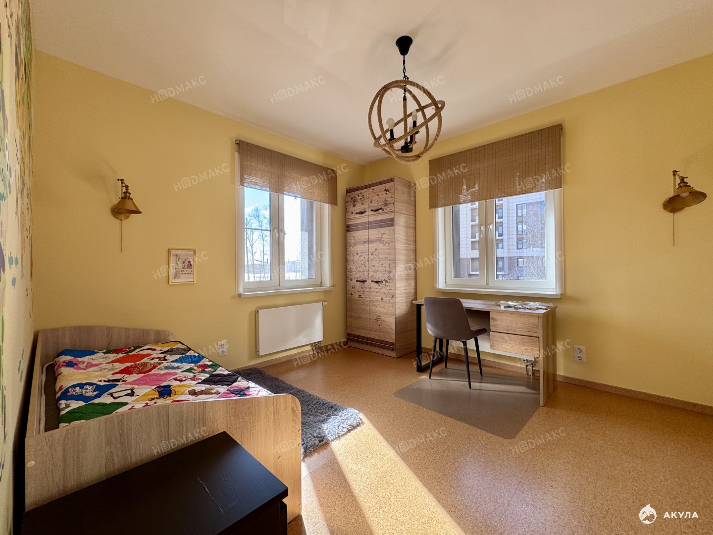 В отделке использованы экоматериалы (натуральная пробка и тд.). Планировка : спальня (окна на запад), детская (окна на запад и юг), гостиная (окна на юг), оборудованная кухня, санузел с ванной, просторная гардеробная комната.