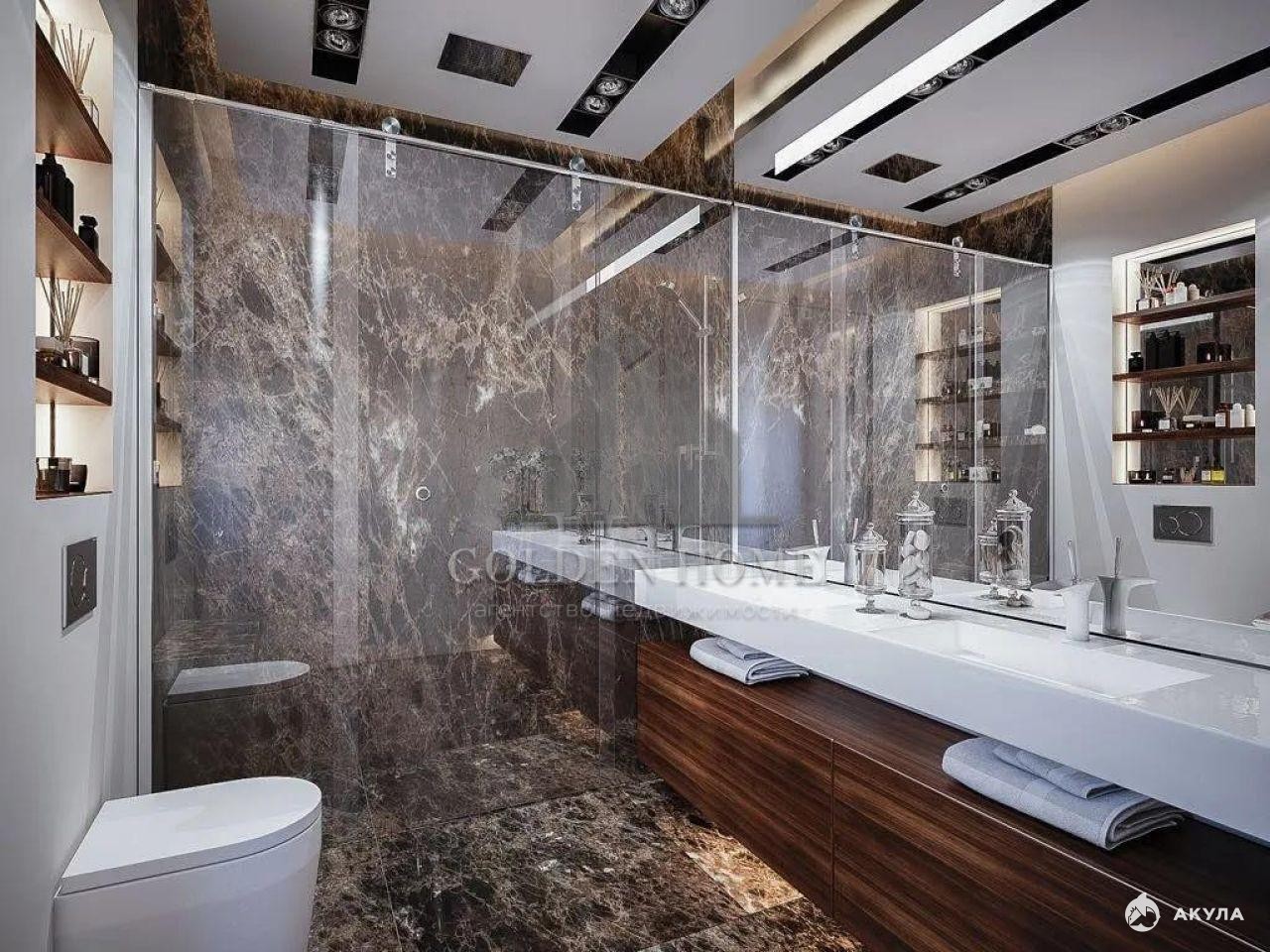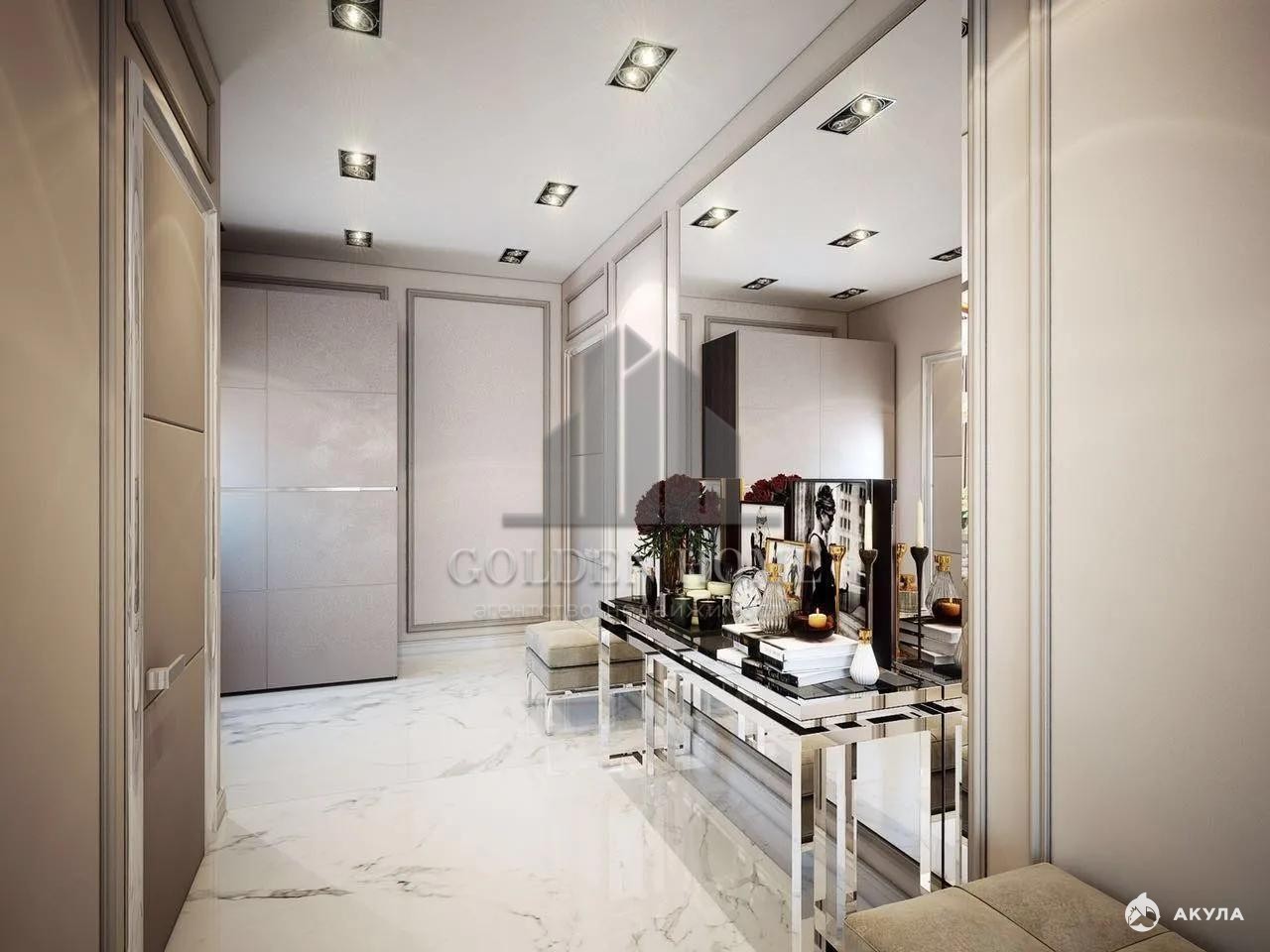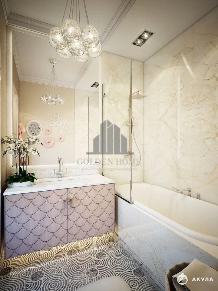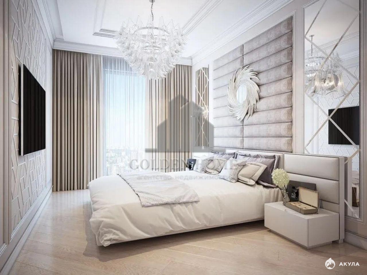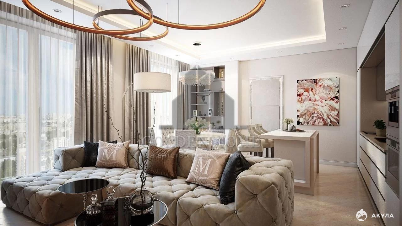 В квартире выполнен дизайнерский ремонт с использованием премиальных материалов. Интерьер дополнен итальянской мебелью, изысканной лепниной и дорогими световыми решениями.