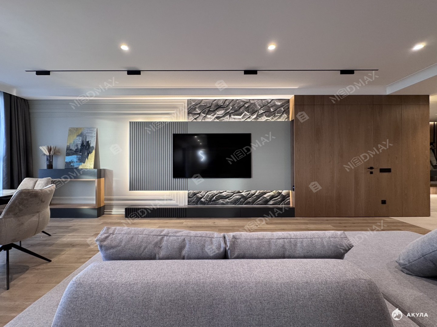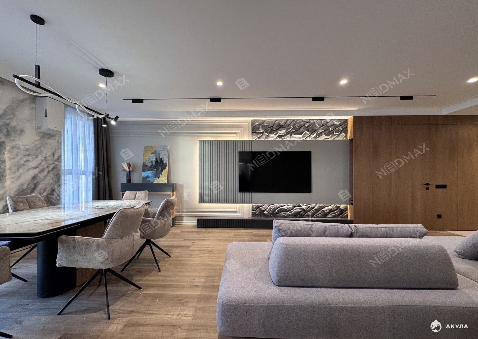 В квартире выполнен качественный ремонт по индивидуальному дизайн - проекту с использованием уникальных отделочных материалов. Мебель на заказ, премиальная бытовая техника. Климат-контроль + тион в каждой комнате, теплые полы, хорошая шумоизоляция.